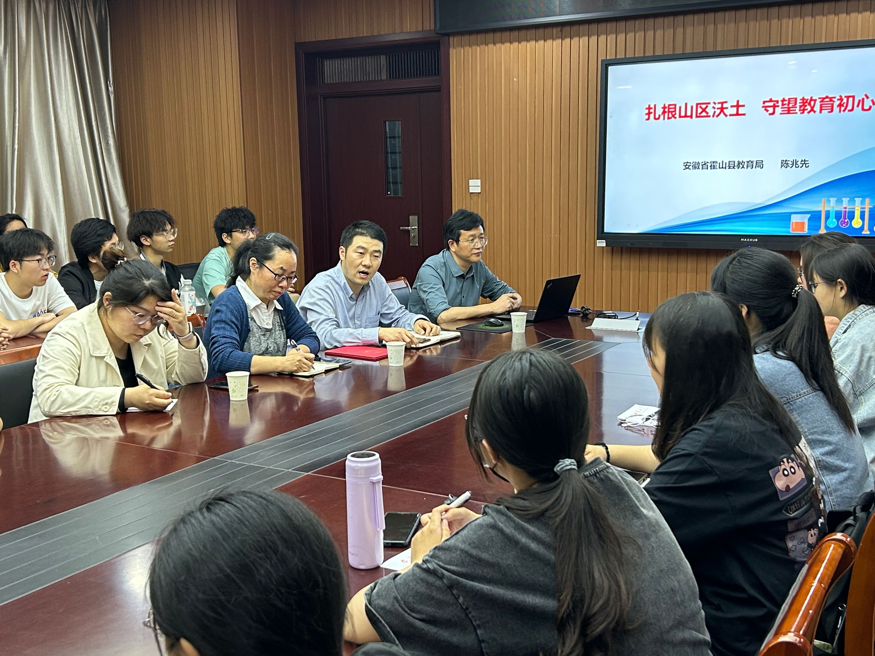 陈兆先老师身为乡村教师,心系乡村教育,他以“扎根山区沃土,守望教育初心”为主题为同学们做师生面对面交流。他结合自身经历勉励同学们要精进努力,打牢基本功;通过生动的案例分享,引导师范生要积极探索,与课改共成长,潜心向学,做好学科教研。以教学比赛、职称评选为例展示乡村教师亦大有可为,提醒同学把握机遇,保持初心。最后,对未来即将从事教育行业的同学提出责任与爱的要求,要努力争做新时代“四有”好老师。报告会后,与会的各位老师和同学就“优师计划”员工培养等重点内容进行交流讨论。