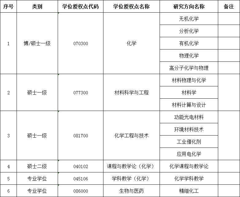 学位授权点设置一览表