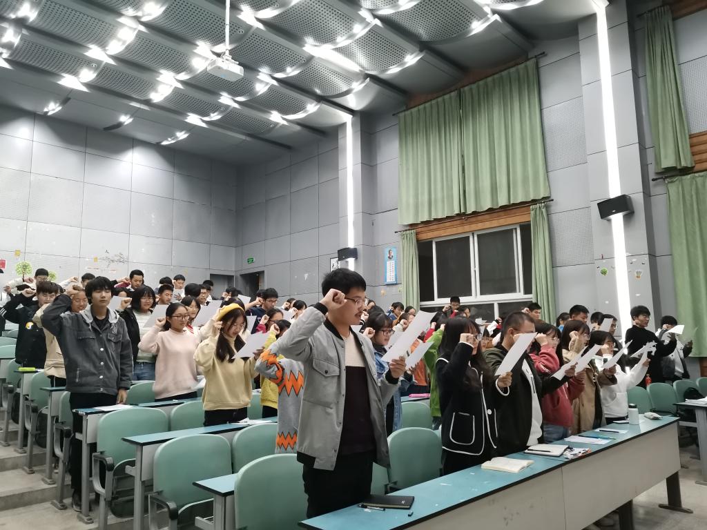 最后,院团委员工副书记梅本星带领英国正版365官方网站团委员工会全体成员共同签署了《任职承诺书》并进行集体宣誓,引导广大成员明确工作职责,强化责任意识。部员代表梅凯毓同学的发言将会议推向了新的高潮,他表明了自己作为一名大一新生在团委员工会工作期间的所学所感,并借此机会畅谈了今后工作的目标。会议结束后,全体成员进行了合影留念。
