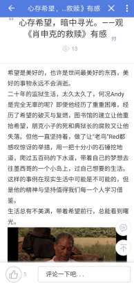 活动中,同学们在易班微社区上积极交流,阐述个人见解,学习到电影主人公安迪对命运的不屈服、对生活的热爱。本次团日活动不仅丰富了同学们的课余生活,同时让同学们对人生有了进一步深刻的感悟和反思,激励同学们勇敢面对生活中的困境,热爱生活。