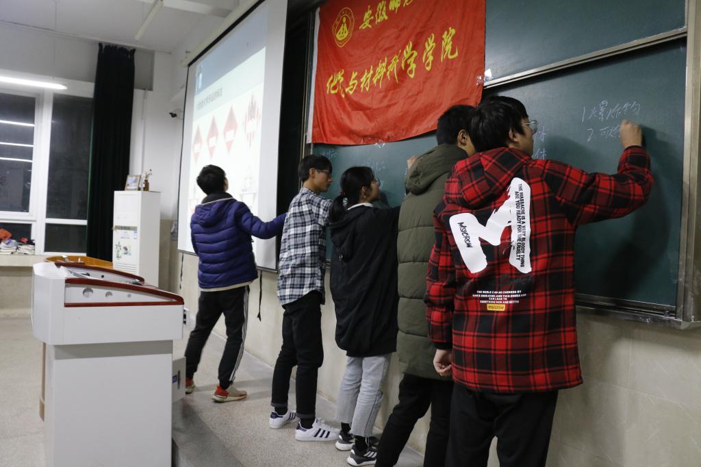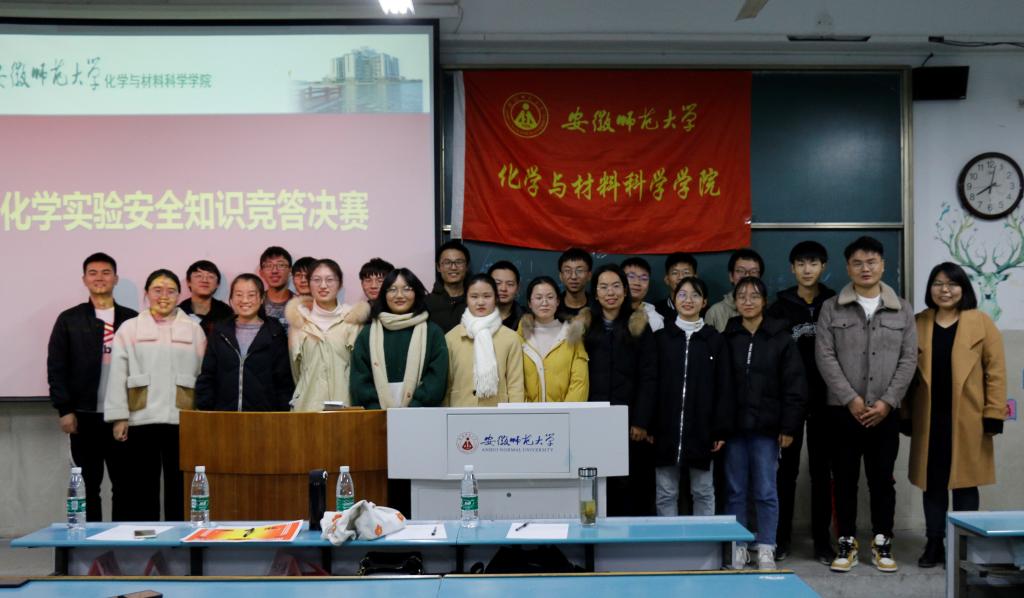 化学实验安全知识竞赛的内容涉及到化学实验安全的各方面问题,全面考察了参赛选手的实验室安全知识储备量和现场反应能力。随着主持人宣布完比赛规则后,竞赛正式拉开帷幕。比赛第一轮分为必答和抢答两部分,必答部分由各专业代表队伍固定答题人员回答,现场工作人员对错题分别进行了详细的解答。在抢答环节中,各专业选手们积极举手作答,竞争十分激烈。紧张的实验安全知识对决之余,还进行了化学知识趣味有奖问答,此环节中现场观众踊跃参与,比赛氛围达到了一个新的高潮。随后由第一轮比赛产生的前两名队伍进行第二轮比赛,以个人抢答赛的形式决出名次。经过激烈的角逐,来自化工专业的选手夺得桂冠,其他专业各选手也分别取得了优异的好成绩。陈静老师,周冬冬老师,段传钦老师分别为获奖选手颁奖,最后各位评委老师和各专业选手以及现场工作人员合影留念。