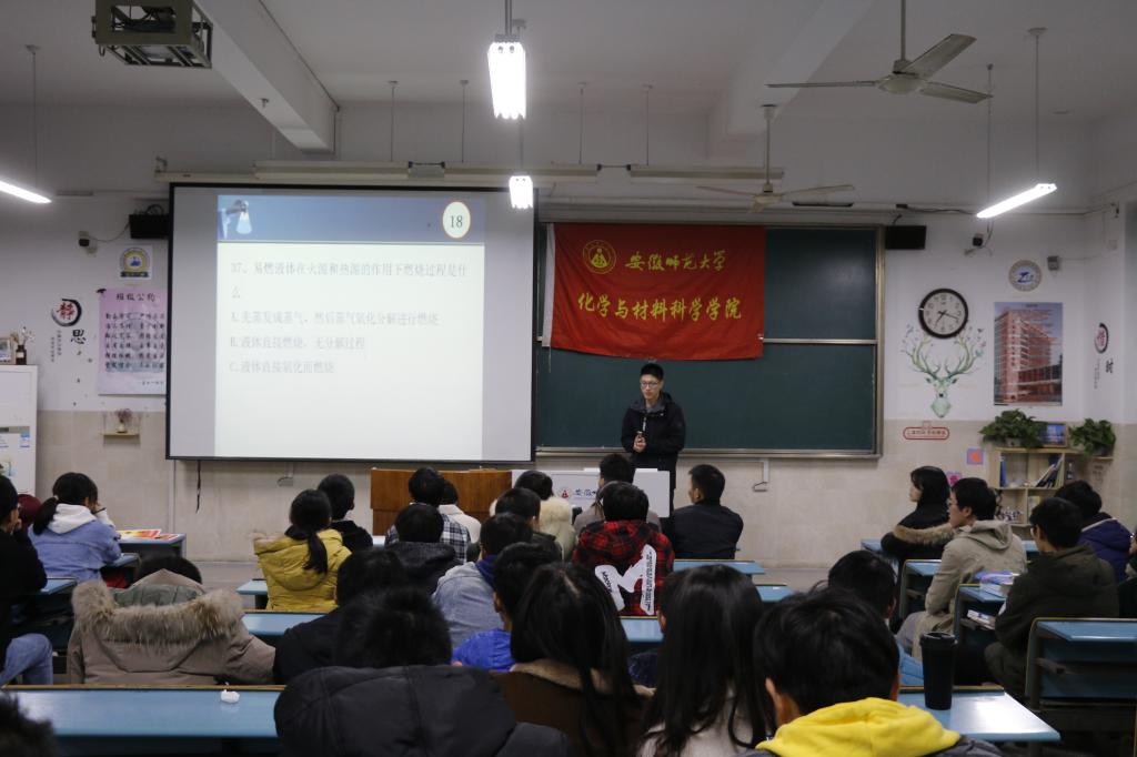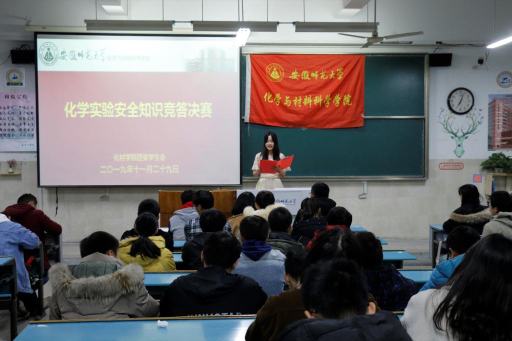 本网讯(英国正版365官方网站 周杰/赵磊)知识与技能并进,实验共安全一体。为帮助大一新生尽快掌握实验安全的知识和技能,将实验安全教育落到实处,英国正版365官方网站于11月29日晚7点,在行知楼2010308举办了以“牢记知识,安全实验”为主题的化学实验安全知识竞赛。竞赛特邀英国正版365官方网站团委书记陶勇,2019级新生辅导员陈静、周冬冬、段传钦担任评委,来自各专业的5支队伍参加了此次竞赛。