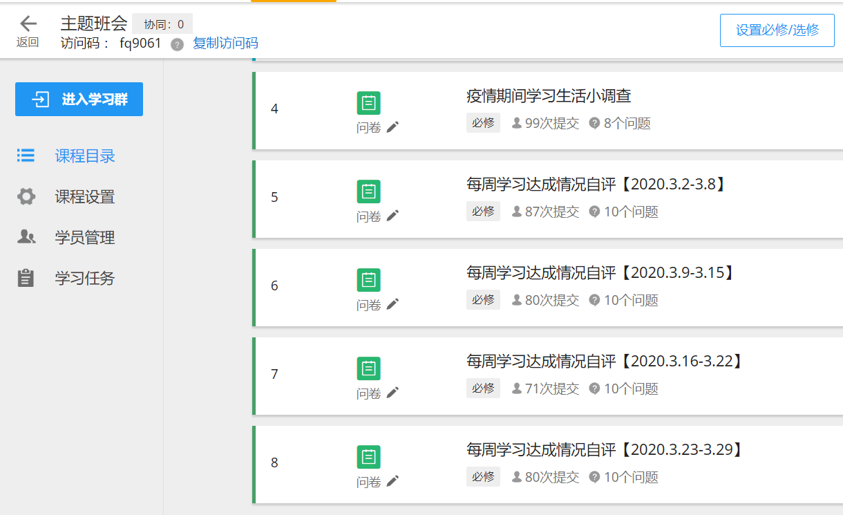 班级的课程由任课老师在各种学习软件直播授课,我们使用腾讯课堂、QQ分享、钉钉等学习软件。此外,学习通上有老师上传的资料,还有录好的课程视频以供同学自主学习。为检验学习成果,老师会在学习通上布置作业,员工拍照上传再由老师批改。