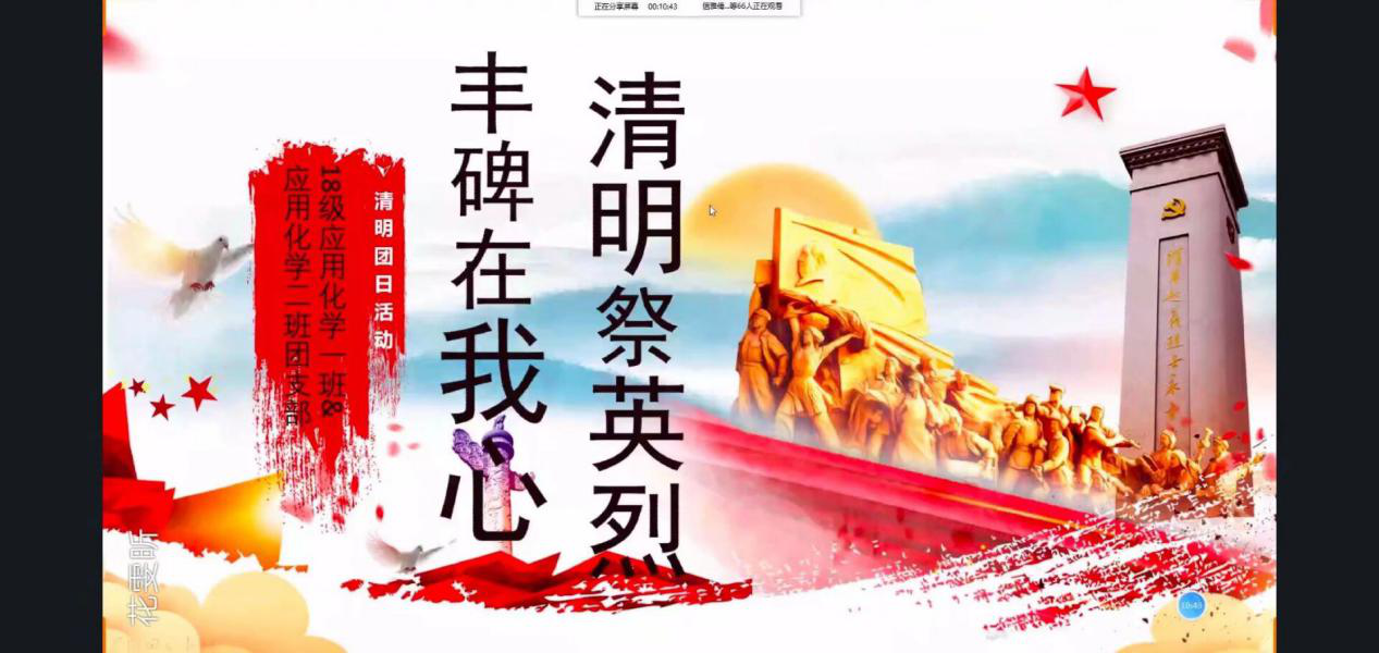 本网讯(18应化2班 王皓月)2020年4月4日清明节,2018级应用化学专业全体开展了以“清明祭英雄,丰碑在我心”为主题的团日活动,旨在哀悼抗击新冠疫情牺牲烈士和逝世同胞。