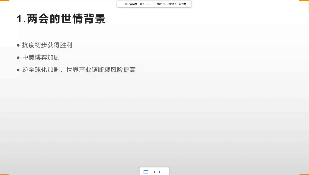 李冬冰老师介绍了两会开展时的国际背景与国内形势,以疫情为核心介绍了疫情对国际格局的变换,以及对经济方面的影响。细节方面,介绍了政府工作报告的风格和重点指向。老师表示:“疫情不单单短暂改变了我们的生活方式,更对中美关系造成了影响,此后国际关系的变换都将引起我们的重视。”而对于两会中总书记三下团这一热点问题,李老师发表自己的观点:“国家安全是一国两制的前提,这次前行是势在必行,刻不容缓的。这也考察了特区政府和全国人民的团结和坚强意志。”。