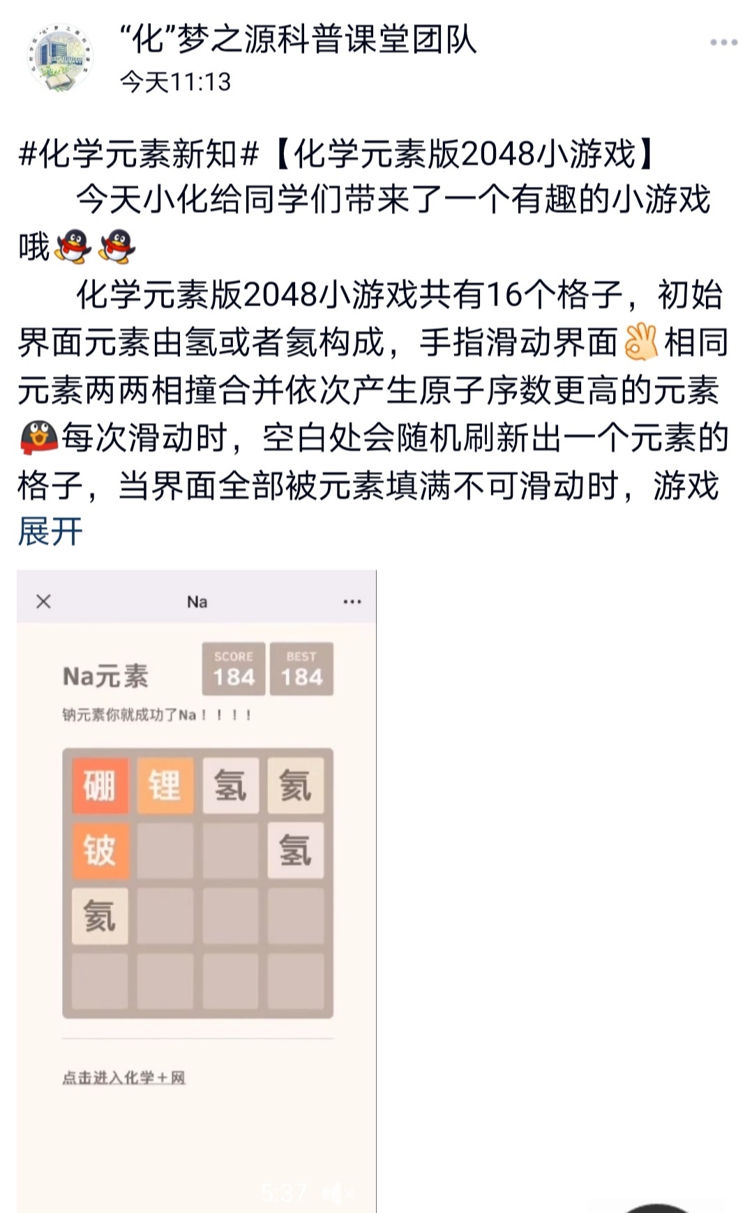 为及时检验员工们的教学成果,并第一时间完善团队成员教学过程中的不足之处。团队成员群策群力,制作了调查问卷及时掌握员工的学习情况;举办了阶段性小测验和课堂笔记大赛,旨在通过化学知识竞答和课堂笔记整理,巩固员工们之前所学的化学知识;推荐化学元素版2048、烧杯小游戏,让员工们足不出户,在指尖上领略化学反应的魅力。此外,团队成员汪雨薇还走进线下课堂,和员工们积极互动,为员工答疑解惑,面对面了解员工在学习化学过程中的面临的困难。