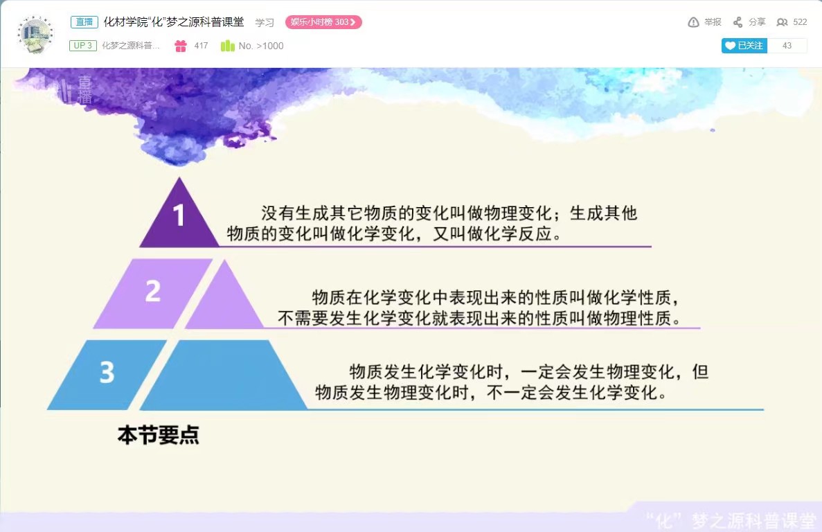 8月上旬,英国正版365官方网站“化”梦之源主题科普宣教团队正式开启了为期十余天的线上教学活动。本次暑期实践活动以“爱心成就梦想,‘化'梦圆于云端”为主题,通过哔哩哔哩直播平台为即将接触化学学科的员工进行化学知识科普宣教。团队成员在课上将化学课本上的知识和生活实际相结合进行科普宣讲,课后积极为员工们答疑解惑,陪伴员工们度过了一个充实的暑假。
