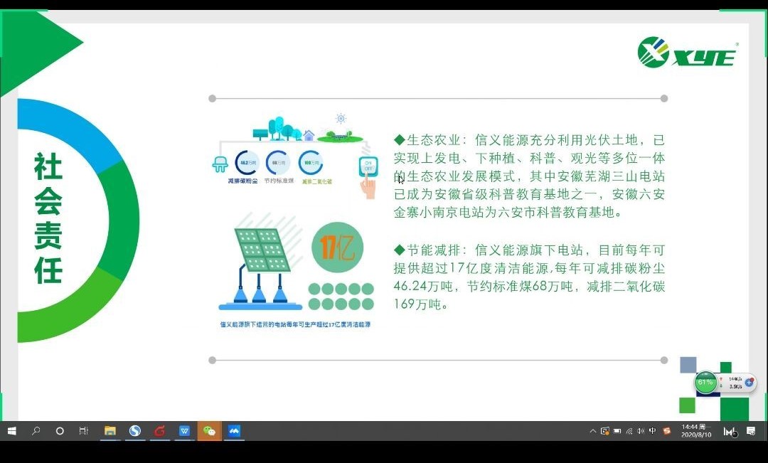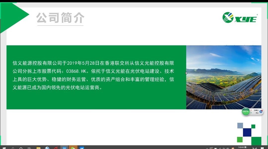 会议伊始,程经理通过宣传片令我们身临其境,走进并了解信义公司。宣传片中对信义集团的整体的描述和概括向我们展示了信义集团的投资之高和规模之大。随后程经理展开了详细的介绍,我们了解到,信义集团主攻的业务是玻璃和新能源,本身是一个资历丰富、规模较大的集团,有一定的经验基础和社会资本。之后程经理详细介绍了信义集团的支柱产品“玻璃”,分别向我们展示了浮法玻璃和自主研发的SOLAR-X热反射玻璃。他也指出信义集团始终坚持的是“以市场为导向,以质量为根本”的发展理念。接下来程经理又向我们介绍了些许功能各异的玻璃,我们也因此更全面地了解了新能源运用以及不同材质地玻璃在实际中的运用。紧接着程经理就当前老员工就业表达了自己的看法,认为当前疫情不会一直影响着企业,老员工就业还是呈现积极的态势,但是企业招聘本身就是选拔人才,只有自身足够优秀,才能得到更多的“橄榄枝”,同时,他也补充说道,老员工就业最重要的是专业对口。程经理也向我们推荐了自己所在的信义集团,表示欢迎我们的加入。在最后的提问互动环节中,同学们积极踊跃地提出了自己的疑问,老师也都一一耐心解答。此次会议于下午4点1〇结束,队员们非常感谢程经理的指导,同时也都收获满满。