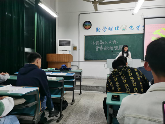 2020年10月18日,第一次主题团日活动开始。由我班团支部书记张艾雅同学主持。本次团日活动我们旨在从思想觉悟方面出发,以“小我融入大我,青春献给祖国”为主题集中开展主题团日活动,从集体出发,激励和引导广大团员青年大力弘扬以爱国主义为核心的伟大民族精神,进一步坚定“四个自信”,践行青春使命,助力脱贫攻坚。本次团日活动的内容分三部分进行,分别是以ppt形式向同学介绍团委团史、观摩抗疫电影体会爱国主义和奉献精神与组织同学写心得体会。