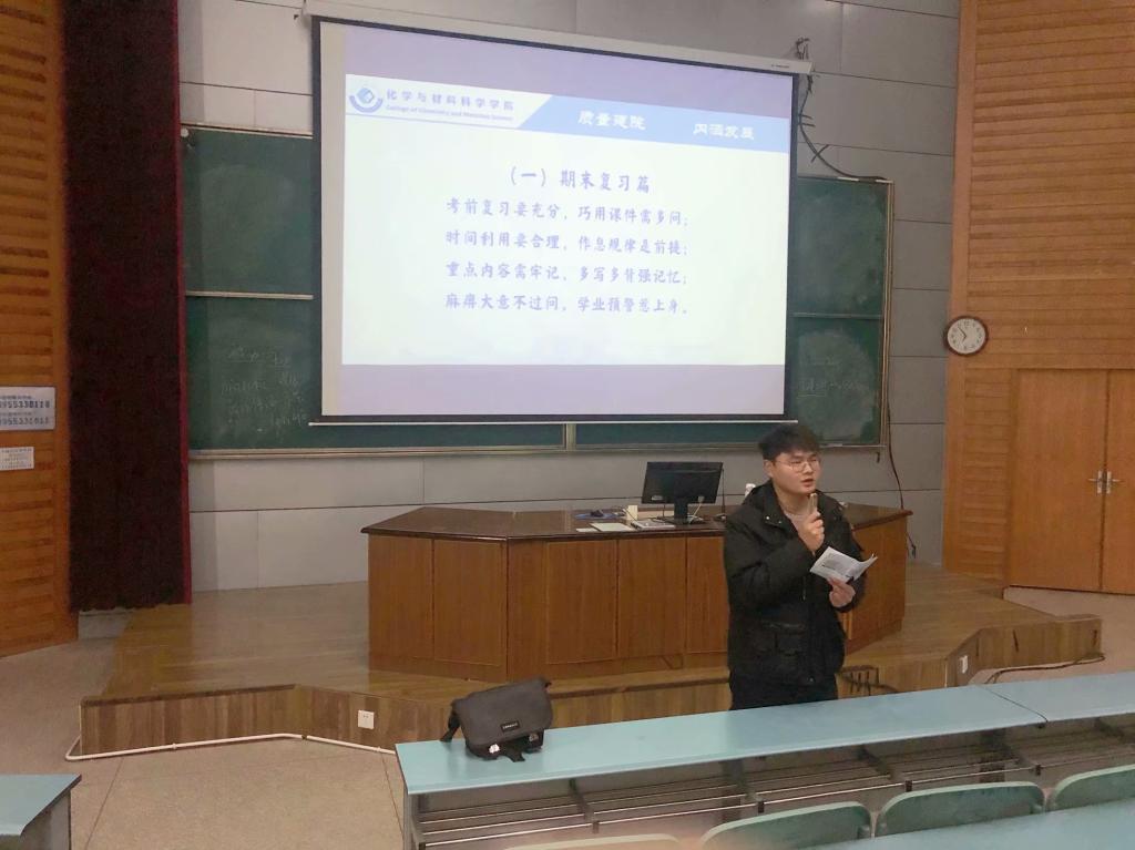 本网讯(英国正版365官方网站)为进一步督促员工树立良好的学风和考风,做好员工的文明离校和寒假安全教育工作,2018级应用化学、材料化学、化学中外专业于12月29日开展期末考风考纪暨安全离校主题班会,本次班会由辅导员陶勇主持。