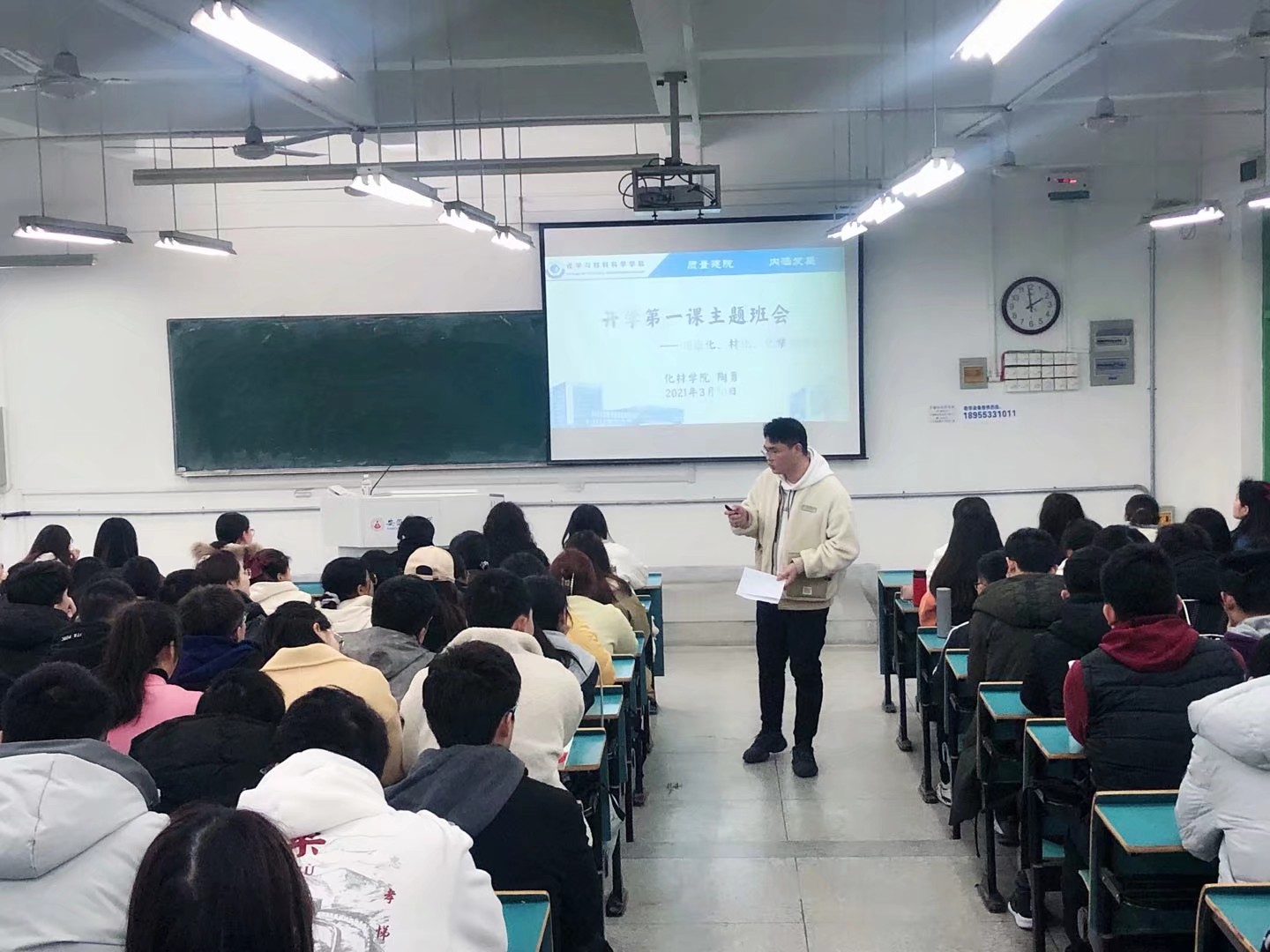 本网讯(18应用化学2班 王皓月)2021年3月10日下午,2018级应用化学、材料化学、化学中美班的全体同学在辅导员陶勇的带领下召开了"开学第一课"主题班会。辅导员从疫情期间校内管理、遵守日常行为规范、立足当下明确个人规划展开叙述,旨在对疫情期间同学们生活与学习方面作出提醒,督促同学们遵守常态化疫情防控下各项管理工作、努力学习不松懈。
