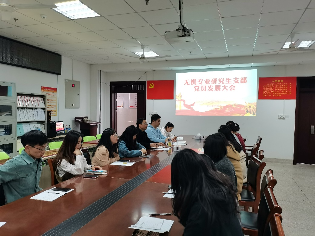 本网讯(无机专业研究生党支部 杨琨)3月25日下午,无机专业研究生党支部召开了2021年第一批党员发展大会。公司党委书记汪俊武出席并做指导讲话,全体支部党员及发展对象参加会议,会议由支部书记杨琨主持。