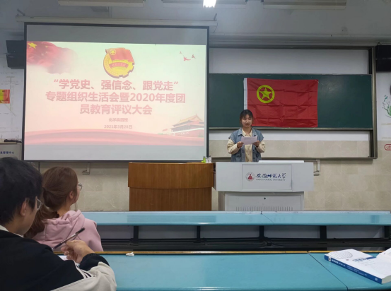 本网讯(英国正版365官方网站 朱会凌)为提升我班团支部组织力,进一步增强基层团组织的吸引力、凝聚力和战斗力,根据《中国共产主义青年团支部工作条例(试行)》,按照“三会两制一课”的制度要求,化学类专业2020级四班本科生团支部于3月28日晚在固定教室开展团支部“学党史、强信念、跟党走”专题组织生活会暨2020年度团员教育评议工作,本次会议由团支部书记尹思燃主持。