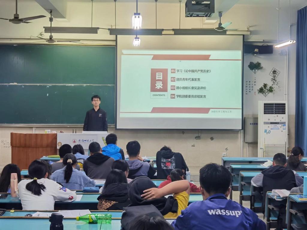 团支部书记王晨欣带领大家共同学习《论中国共产党历史》,简单介绍中国共产党的发展历程并进行心得体会分享,让大家感受到中国共产党建党百年以来的艰难历程以及为人民作出的贡献。团员青年代表刘意、石剑、张远志、吴星悦同学上台发言,向大家讲述自己的经历和争做优秀团员的感受,鼓励大家积极完成青年大学习网上主题团课,平时积极参与团日活动。王晨欣向大家汇报了优秀团员的评议成果。各团小组组长分别对上学期的团支部工作情况做出了评价、提出了建议。列席会议指导的公司团委委员向大家介绍中国共青团,提出本次会议中的不足之处,并对此次支部大会进行总结。