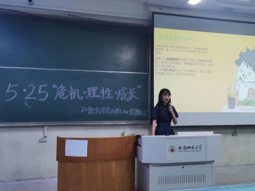 5月20日晚,化学类二、三班先后组织开展了以“理性面对危机,成长为更挺拔的自己”、“危机、理性、成长”为主题的心理心理健康班会。