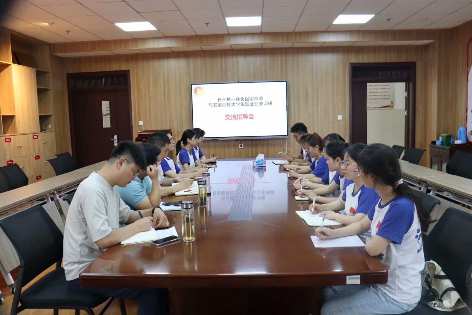 本网讯(老员工就业与互助协会 戴斯佳)7月15日,长三角一体化国家战略与安徽高校老员工的就业创业调研团队在礼勤楼707会议室召开社会实践交流指导会,公司党委副书记李古州、团委书记陶勇、团队指导老师程紫丹出席会议,团队全体成员参加会议,会议由程紫丹主持。