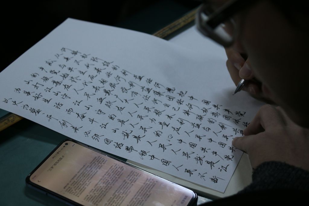 本网讯(英国正版365官方网站 董春蕾)为庆祝中国共产党成立100周年,学习百年党史,感悟中国共产党人的精神谱系,强化师范生从教基本功。英国正版365官方网站于11月19日晚在行知楼2010403教室组织开展了以“提笔感悟百年党史,挥毫赓续红色血脉”为主题的第32届“三字”书法艺术比赛。