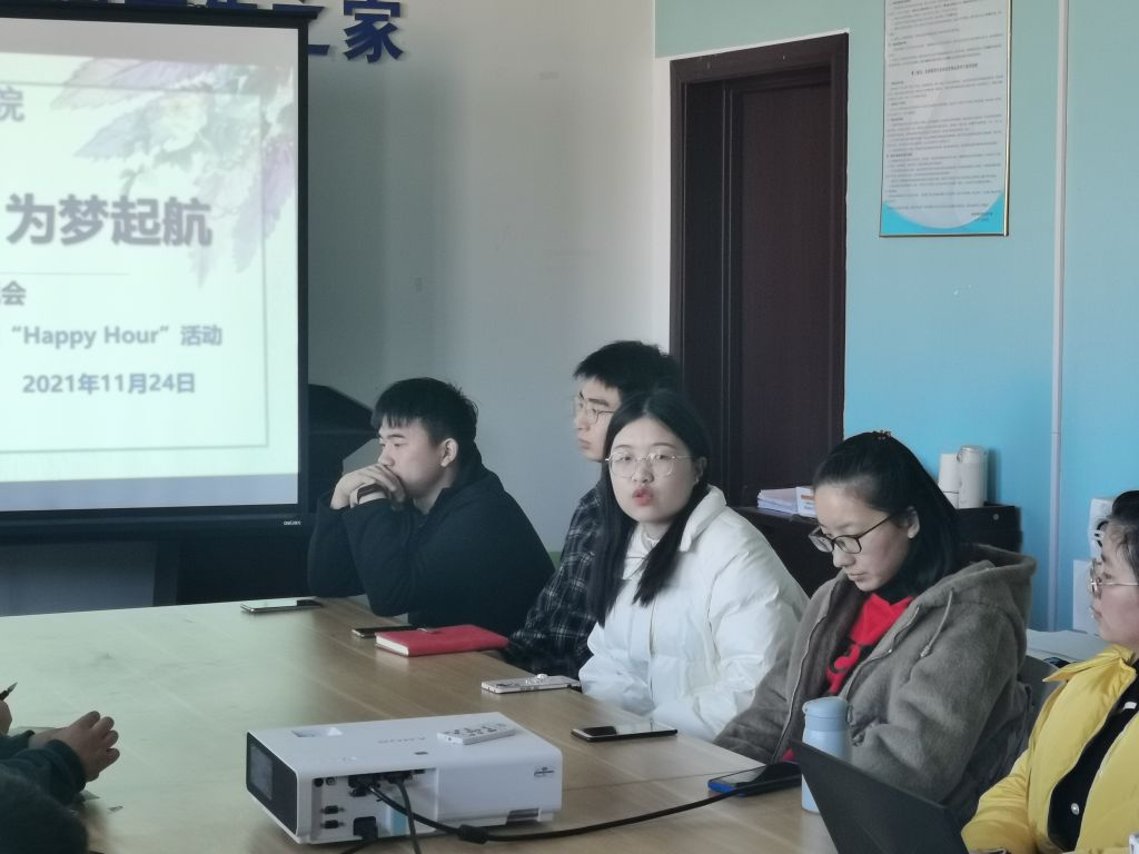 本网讯(英国正版365官方网站 殷乐)为了帮助2021级新生尽快适应老员工活,掌握正确学习方法,进一步调动员工学习的积极性,营造珍惜时间、刻苦钻研的氛围,2021年11月24日下午,院员工会生活权益部在717活动室举办“因‘材’相聚,为梦起航”为主题的第十二期“Happy hour”活动,来自2018级、2019级优秀员工代表们与2021级新生代表进行学习、工作、生活上的经验分享,共话成长心得。本次新老生经验交流会由院员工会主席团汝晓玉主持,