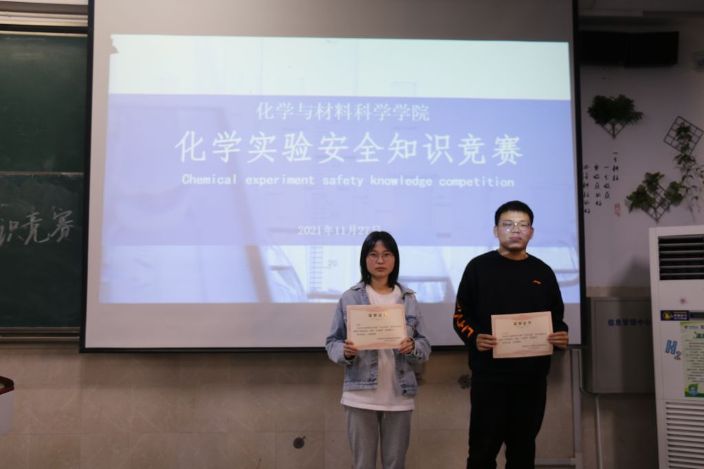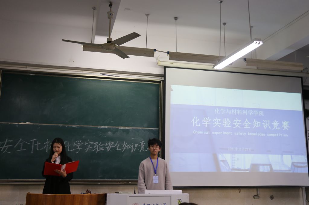决赛则采用轮流答题和抢答的方式,参赛者需按照专业分为六支队伍相互比拼。比赛过程中,选手们冷静沉着,自信认真,充分运用自身所掌握的化学实验安全知识抢答,为了自己和团队的荣誉奋力一搏。现场选手积极踊跃答题,队伍上下团结一心认真作答的良好氛围充分体现了化材学子对专业知识认真严谨的钻研精神以及团结协作的集体观念。在激烈的角逐过后,2021级化学师范1班获得了第一名。决赛时,现场观众积极参与抢答,现场气氛活跃,答对的观众在比赛最后领取奖品。