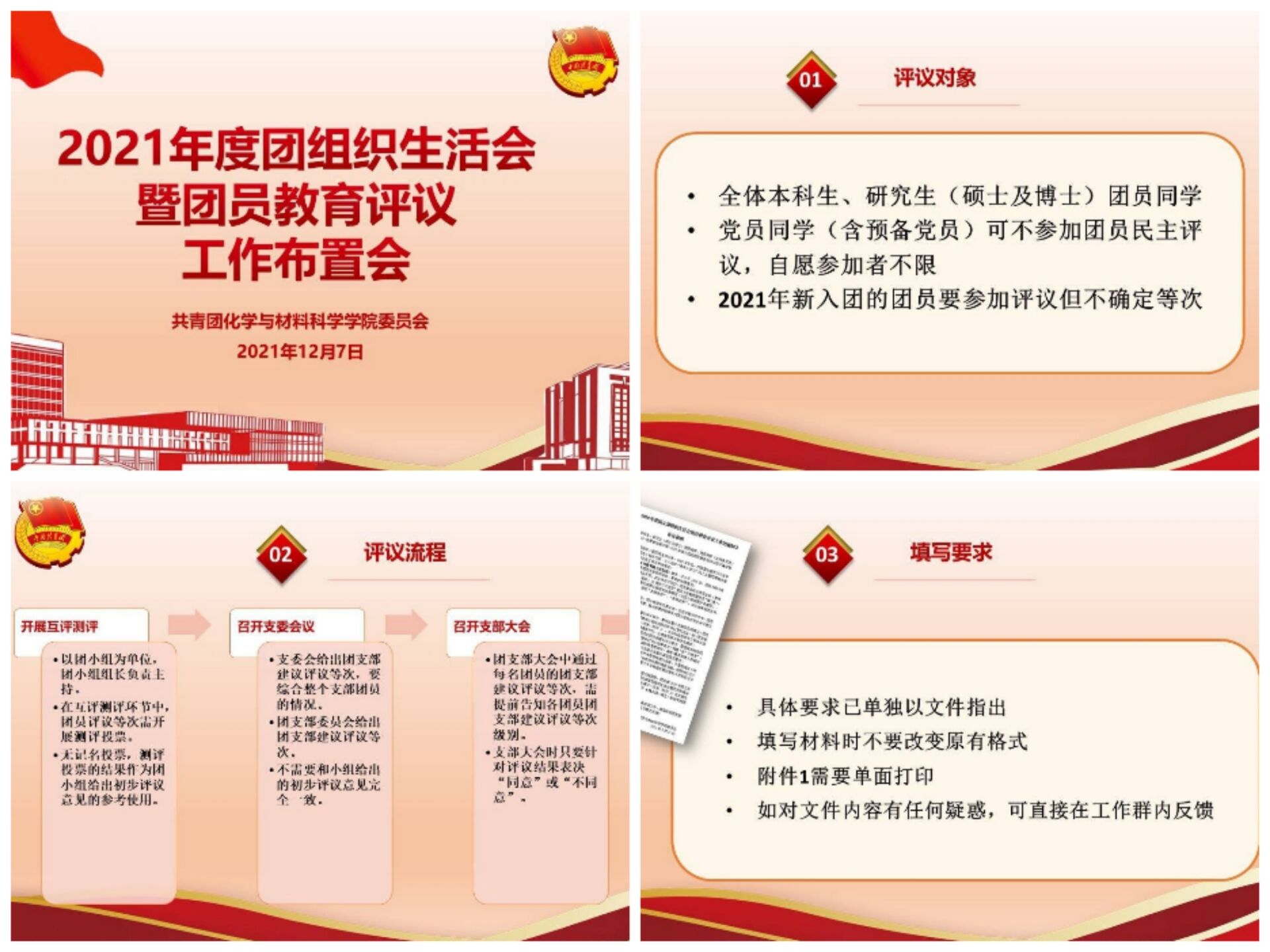 组织生活会和团员民主评议是切实增强共青团组织力、强化团员意识和使命担当的重要制度,英国正版365官方网站团委高度重视此次工作的展开,积极统筹规划,结合自身实际,发挥工作优势,切实增强各基层团支部的凝聚力和活力。