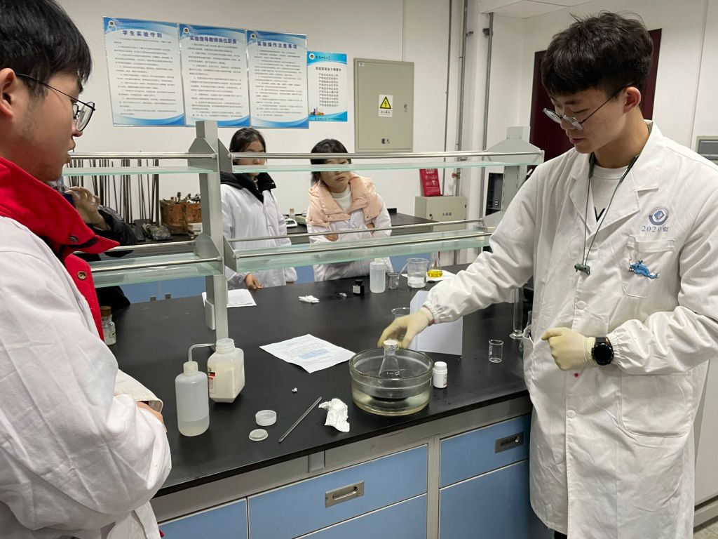 本网讯(英国正版365官方网站 张讷言、张硕)为提升广大同学对化学实验的兴趣,培养动手实践能力与创新能力,12月23日晚,由英国正版365官方网站员工会主办的“趣味化材”第十八届实验技能大赛复赛在礼勤楼611实验室和607实验室举行,2021级和2020级的参赛选手在评委老师的指导下完成本次比赛。