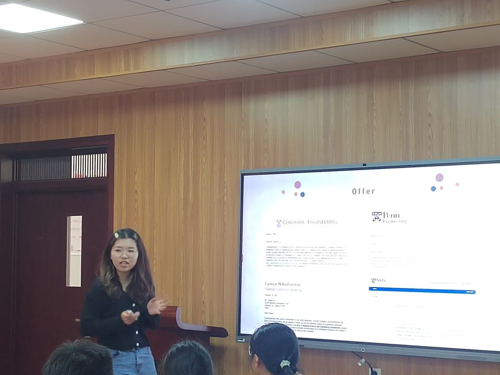 本次经验分享会上,来自高年级的两位优秀员工代表通过PPT展示了自己的相关经历和一些心得。2018级化学师范专业的张思雨通过自身参与的“挑战杯”中国老员工创业计划竞赛、“互联网+”创新创业大赛等比赛项目,介绍了参与项目的主要工作以及参与比赛的方式,同时还提醒了在场同学们相关注意事项;2018级化学工程与工艺专业的顾雪薇则从竞赛经历和科研经历两方面向同学们介绍了相关经验,参加相关学科竞赛提高专业知识的学习,从事科研工作丰富个人履历,与此同时,顾雪薇还重点介绍了夏令营的类型和参与方式。同学们认真倾听,收获颇丰,并积极互动,询问相关问题,现场交流氛围良好,沟通愉快。