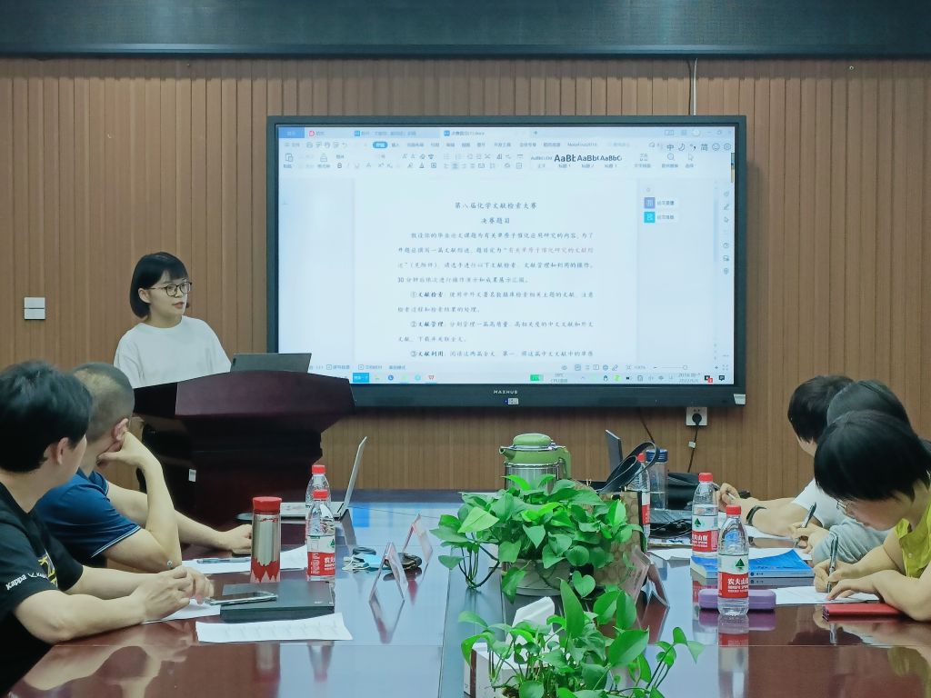 本网讯(英国正版365官方网站柳思佳)为提高员工利用相关文献获取知识信息的基本能力,培养和锻炼员工自学和独立研究能力,英国正版365官方网站于6月6日晚上七点,在英国正版365官方网站礼勤楼702会议室顺利举办第八届化学文献检索大赛,本次大赛由英国正版365官方网站团委素质拓展部主办,公司化学文献检索课程授课教师李一梅、罗时忠、王伟智、卓淑娟、王银玲老师担任评委,参与本次大赛的还有部分2019级、2020级员工代表。
