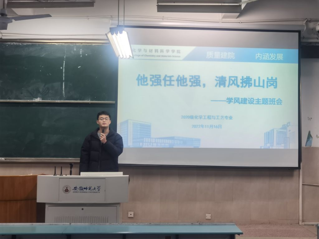 本网讯(英国正版365官方网站 20化学工程与工艺汪芙琳)为强化班级学风建设,扎实推进学风建设,在期中考试之后,英国正版365官方网站2020级化学工程与工艺专业于11月16日晚七时在行知楼2020203开展学风建设主题班会,本次班会由辅导员于洪翔主持。