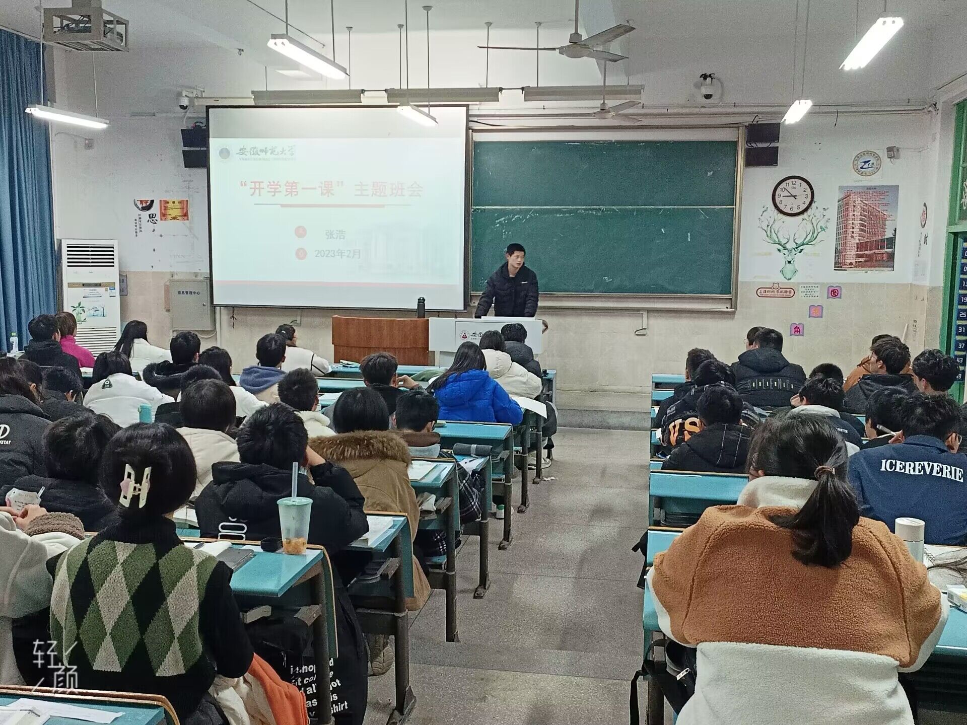本次主题班会上,张浩围绕“新学期,新面貌,新憧憬”向班级同学提出了新学期的一系列要求,号召全体同学学好一堂“思政课”,认真学习宣传贯彻党的二十大精神;学好一堂“劳动课”,保持教室、寝室卫生干净整洁;学好一堂“安全课”,提高人身、财产、心理、用电安全意识;学好一堂“法制课”,认真研学《员工手册》;学好一堂“疫情防控课”,严格落实每日健康监测。