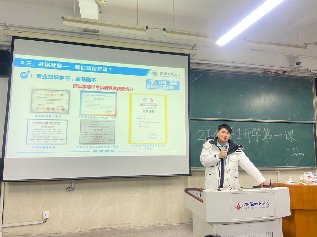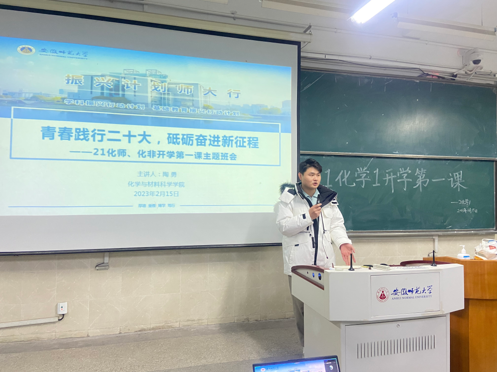 本网讯(英国正版365官方网站 陈淑婷、陶勇)为深入学习贯彻党的二十大精神,引领同学们听党话、跟党走,懂得党的关怀和期望,同时指导同学们做好新学期各项准备工作,用稳定的情绪、努力的态度、积极向上的乐观心态迎接新学期,踏上新征程,2月15日、18日,辅导员陶勇老师分别在2010504、2070205教室为2021级化学师范、化学非师范专业全体同学召开本学期“开学第一课”主题班会。本次班会以“青春践行二十大,砥砺奋进新征程”为主题,围绕党的二十大精神宣讲、德育教育、疫情防控、学风建设、校园安全教育等内容开展。