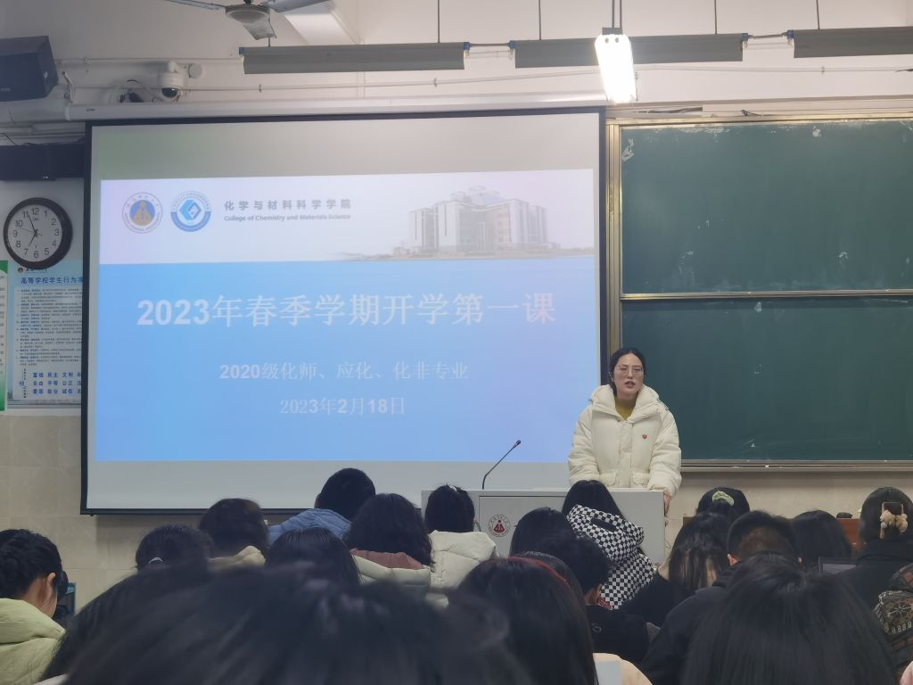 本网讯(英国正版365官方网站 陶佳佳、王芳)春潮澎湃,激荡万千气象,新学期也是新起点,从起势看走势,从开年观全年。为了深入贯彻党的二十大精神,引导员工调整状态,用积极昂扬的心态迎接新学期的挑战,20化师、化非、应化专业于2023年2月18日晚在2010201教室召开了“春季开学第一课”主题班会,本次班会由辅导员王芳老师主持,全体员工到场。本次班会以“青春践行二十大”为主题,围绕着学习贯彻党的二十大精神、战“疫”后教育、诚信考试、安全教育等展开。