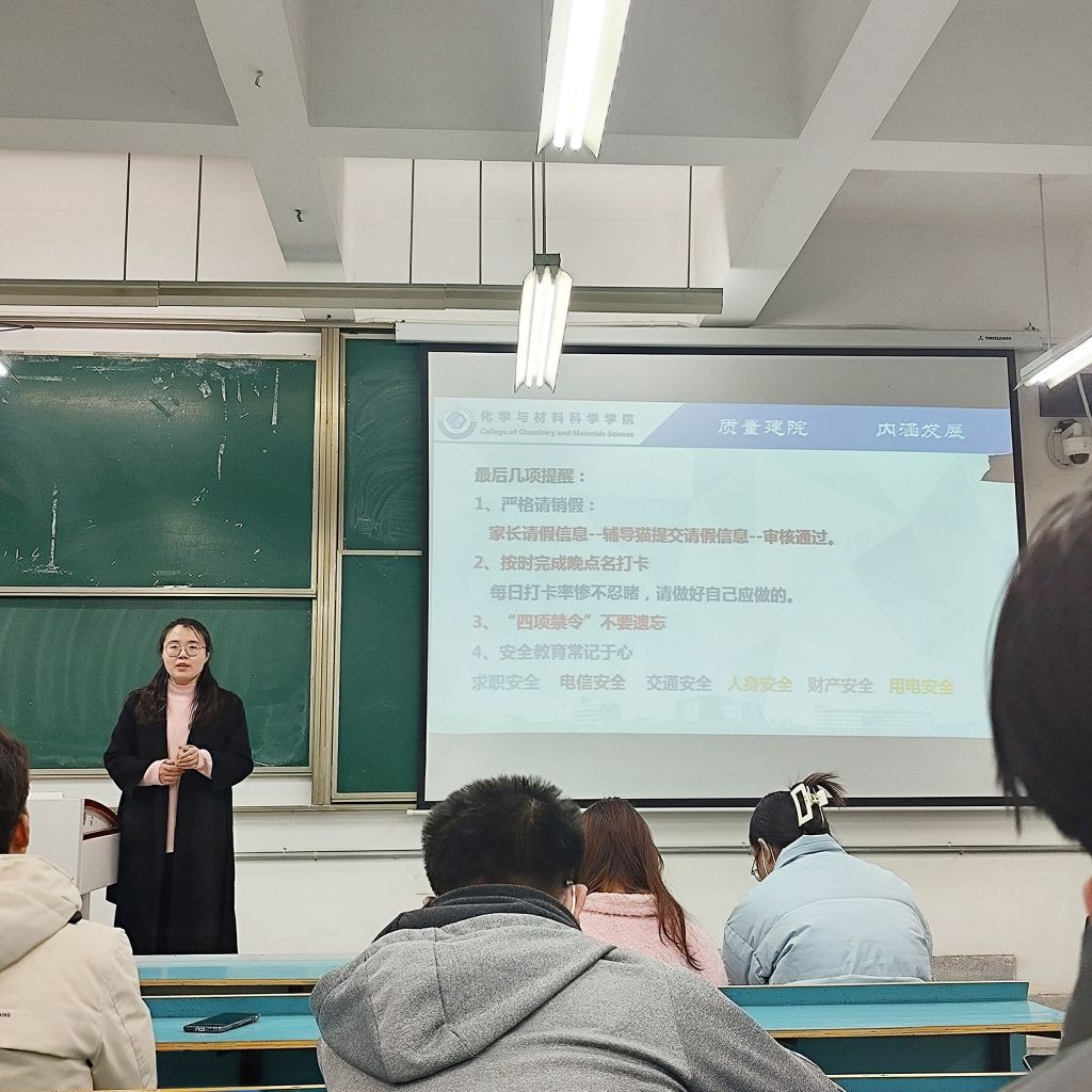 陈静老师还梳理了毕业班近期重点工作,并从安全管理和遵规守纪的角度,对毕业班员工提出了严格要求,希望同学们遵守校规校纪,参加期末考试的同学要严肃考风,诚信考试,毕业季要在求职安全、交通安全、财产安全、个人信息安全等多方面提高意识,注意劳逸结合,注重身体健康。