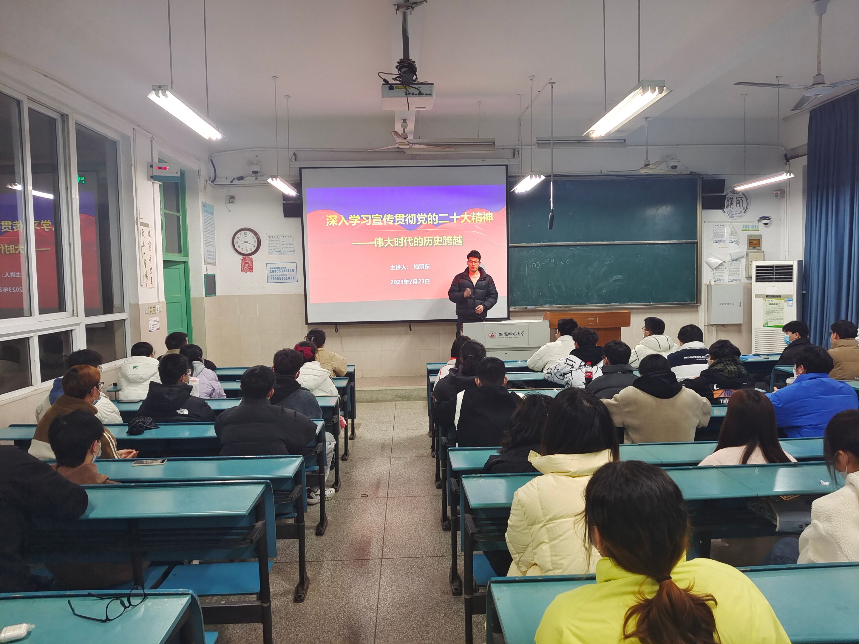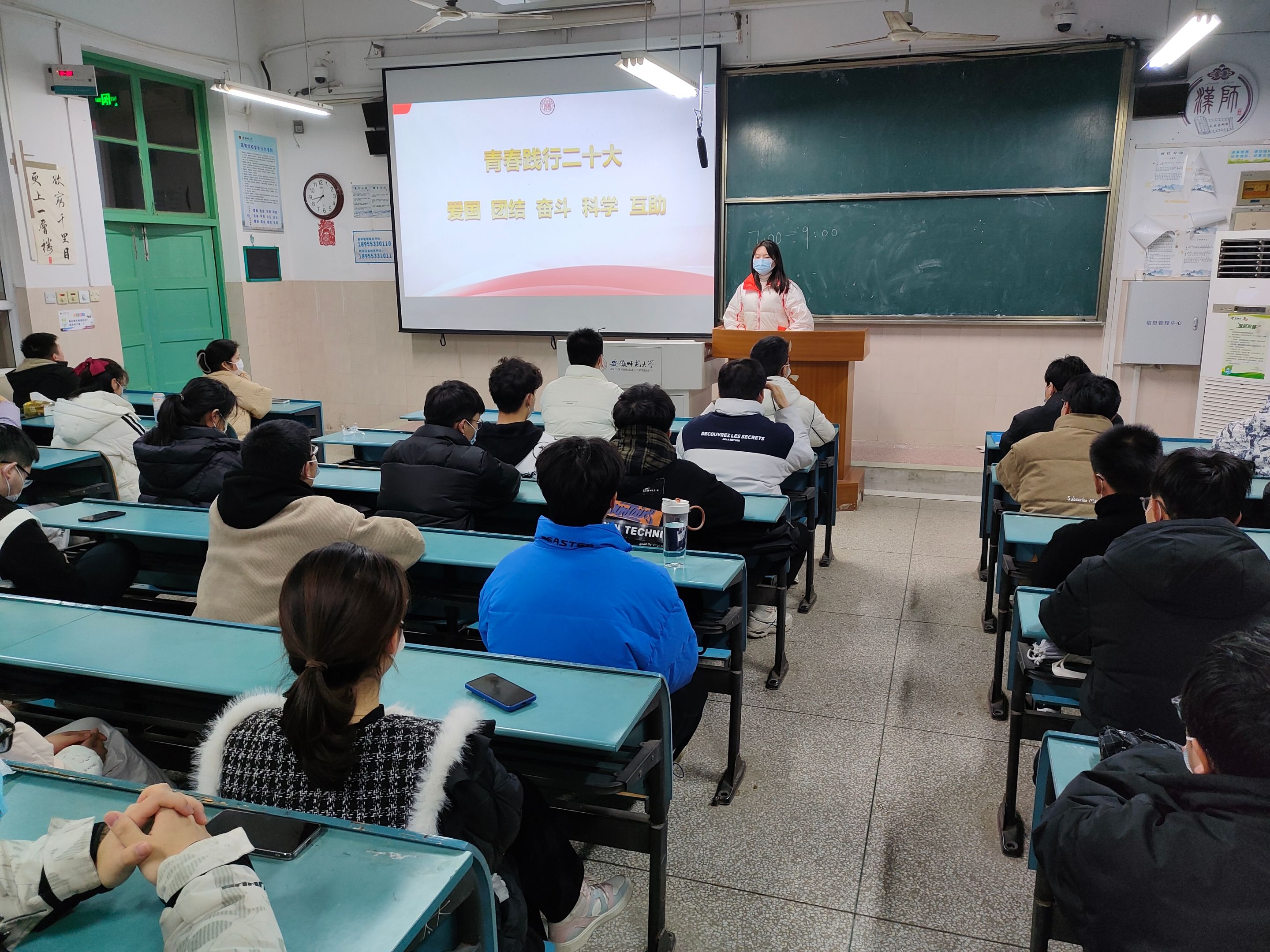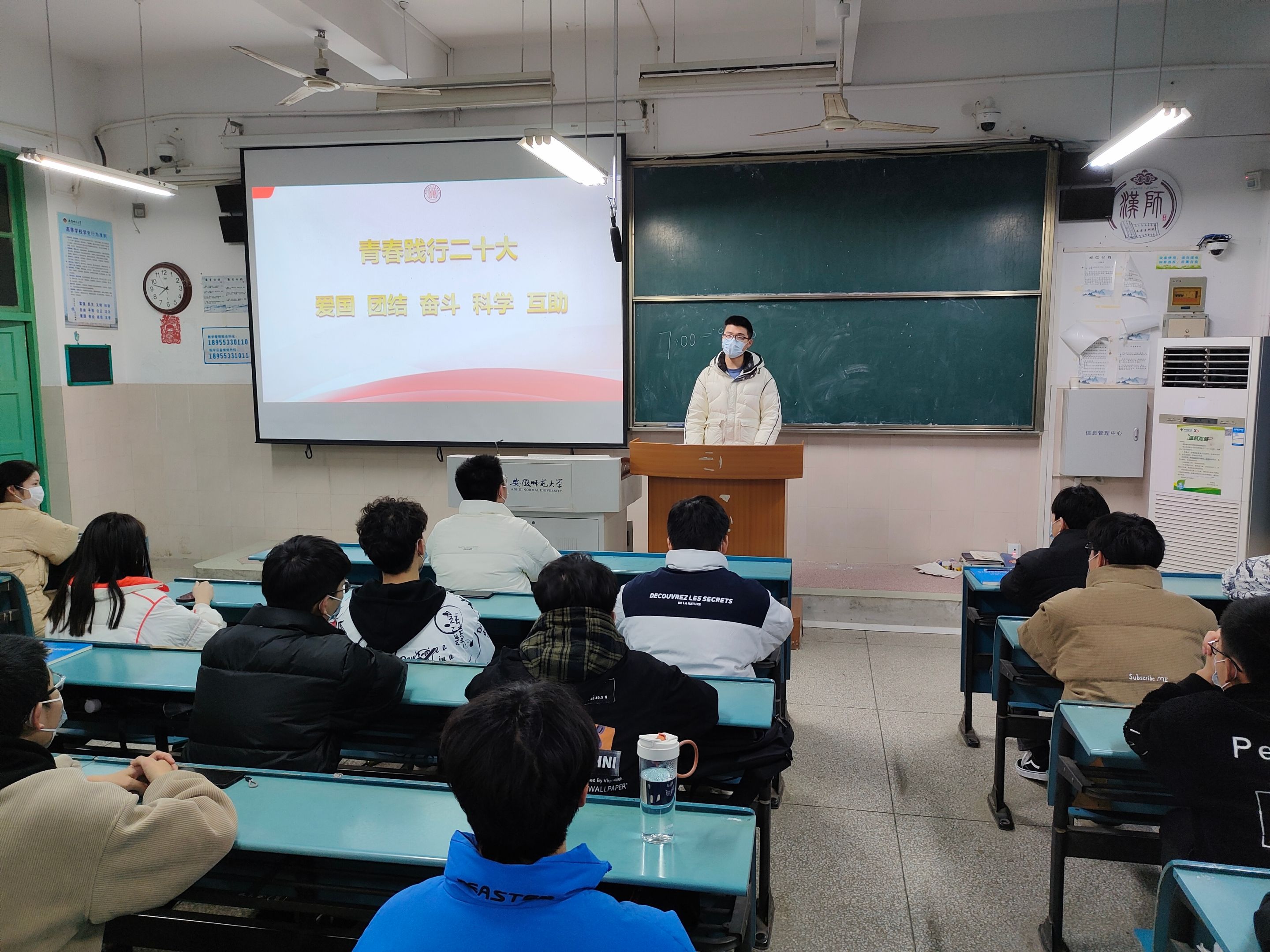 本网讯(英国正版365官方网站 姚安然、梅冠东)为深入学习宣传贯彻党的二十大精神,引导员工坚定不移听党话、跟党走。2月22日、23日,辅导员梅冠东老师分别在2050104、2050102教室为2021级应用化学、材料化学、化学工程与工艺专业全体同学召开“青春践行二十大”主题教育班会。