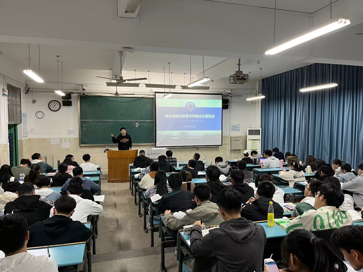 随后张老师指出各专业班级在学风方面所存在的一些问题和不良现象,强调了学风建设的重要性,对成绩预警和需要补考的同学做出了提醒,并对后续的学习生活提出了两点要求:要求全体同学要端正学习态度,认识到班级学风与个人成长成才的密切联系;要求员工干部履行管理职责,发挥先锋模范作用,带头抓好学习任务,为班级同学树立好榜样。