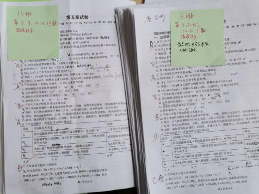 在孙影老师的指导下,小组成员批改完作业后用便签写上错误较多的题号,便于老师在讲作业时能把握员工的学习反馈情况。