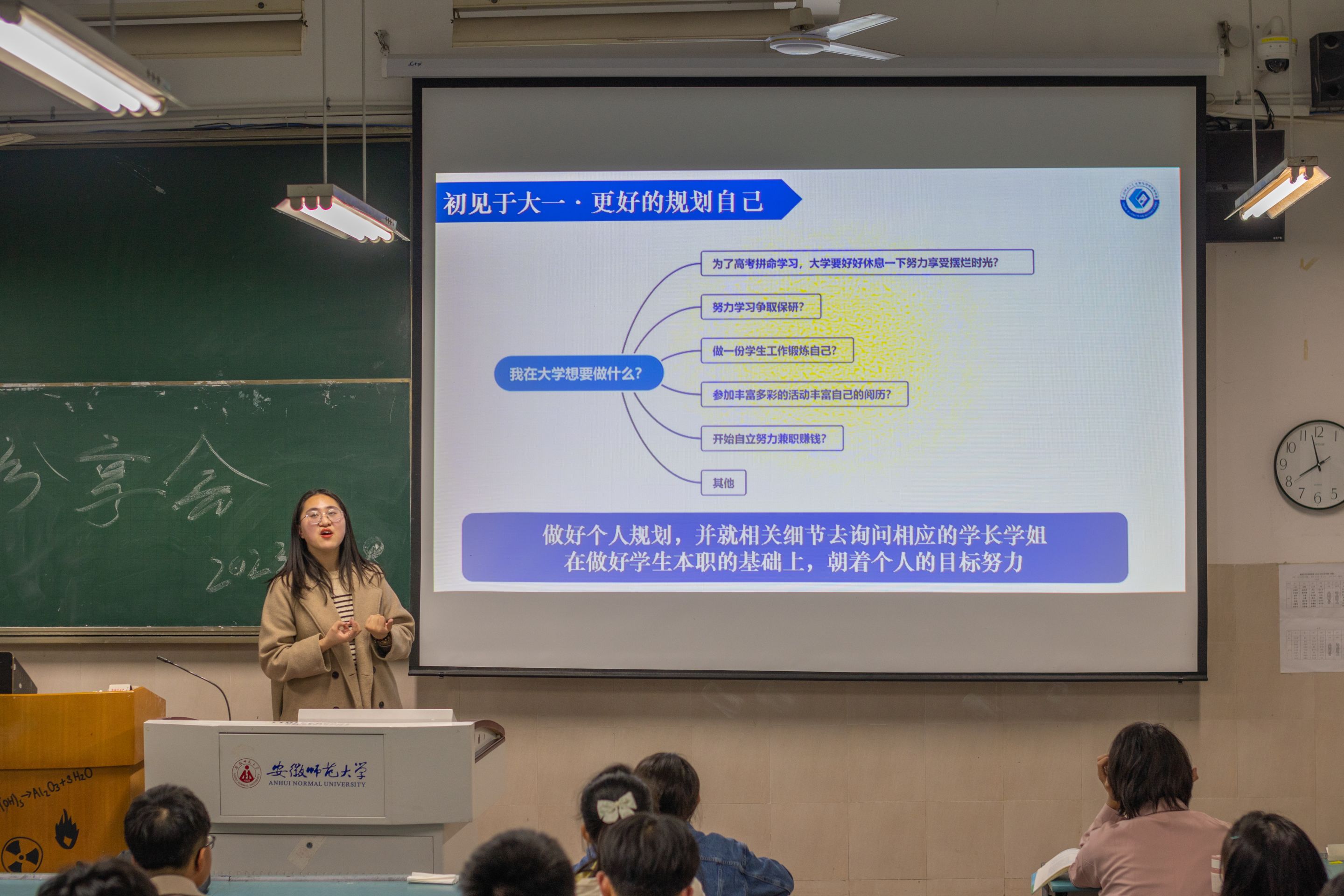 本网讯(英国正版365官方网站 汪韵林、张浩)为帮助2022级应用化学专业的同学明确专业方向和发展目标,合理地规划大学学习生活,4月3日晚,班级邀请2019级吴泓婧面向全体应用化学同学开展经验分享交流,会议由辅导员张浩主持。