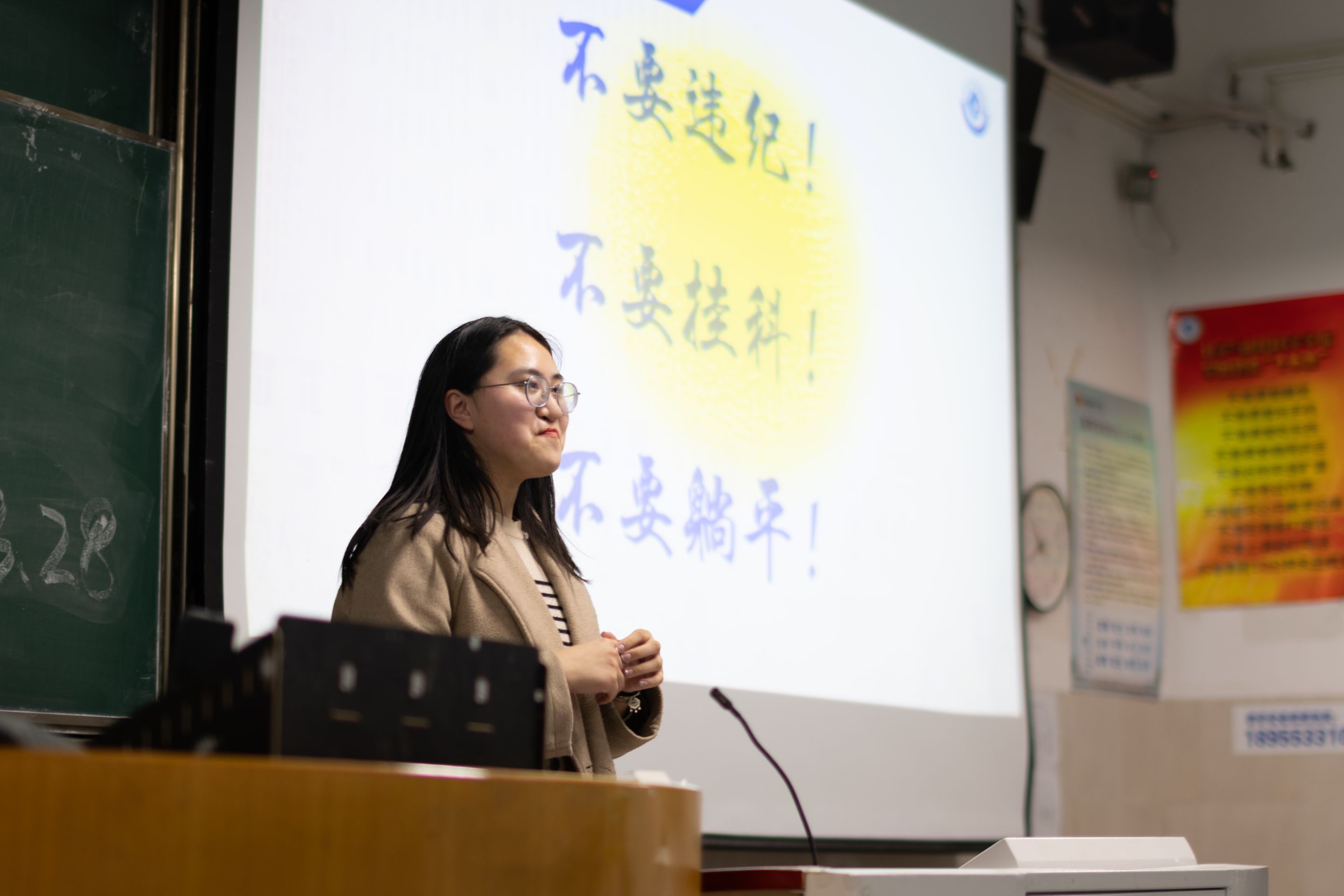 张浩首先向班级同学介绍吴泓婧本科期间取得的重要成绩。吴泓婧从学习、员工工作、志愿活动、考研保研等方面分享了自己对老员工活的感悟和认识,并通过亲身经历引导学弟学妹们做好老员工活的规划。首先是贯穿整个老员工涯的三条红线:“不能挂科,不能违纪,不能躺平”。其次要定好目标,无论做什么事都要有明确的目的,学习尤其如此,目的越明确,学习积极性就越高;目标越宏伟,为实现目标所付出的努力就越多,学习意志就越坚强。最后,吴泓婧结合自己多年在员工会工作的经验对在场的员工干部提出了几点切实有效的建议,介绍了如何更好地平衡学习和工作的关系,如何提高工作效率。