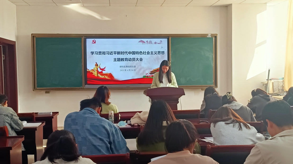 本网讯(英国正版365官方网站 马皖珍)4月26日下午,研究生第四党支部在礼勤楼628会议室召开学习贯彻习近平新时代中国特色社会主义思想主题教育动员大会,学习传达有关工作会议精神和公司公司实施方案,对支部主题教育工作进行动员部署,支部指导老师张薇、支部全体员工党员参会。