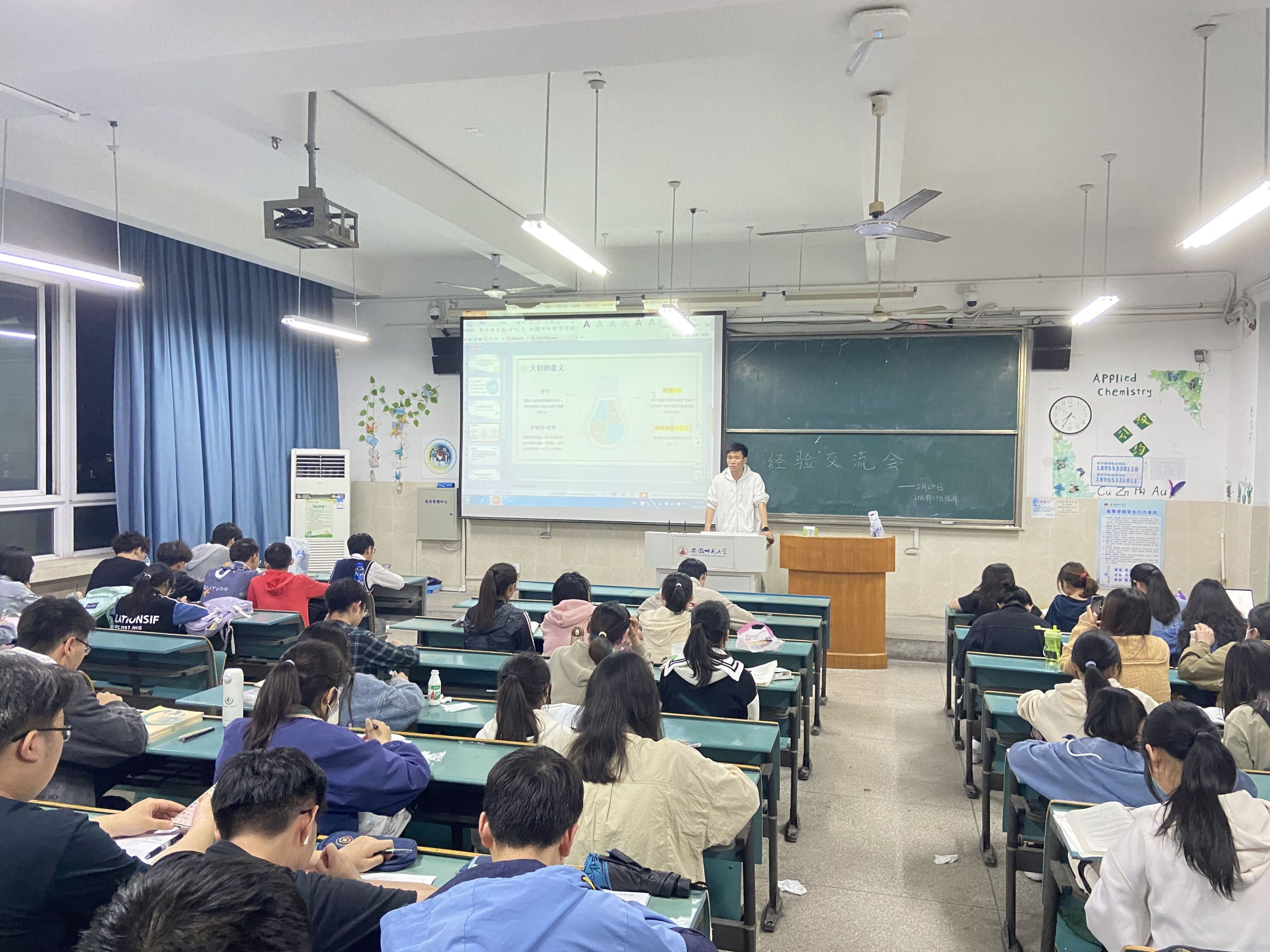 会议由2021级化师1班班长陈子祥主持。王睿、吴泓婧两位学子学姐结合个人开展国家级老员工创新创业训练计划的经历,向同学们分享了自己开展科研训练的体会。针对同学们普遍存疑的问题,他们从如何找到合适自己的导师,如何进行项目选题、组队,如何与实验室师兄、导师和睦相处,以及项目申请书的撰写方法等各种细节问题,重点谈感受、谈经验、谈成果,为同学们上了一堂生动的“科学延续”课,起到了良好的交流效果。