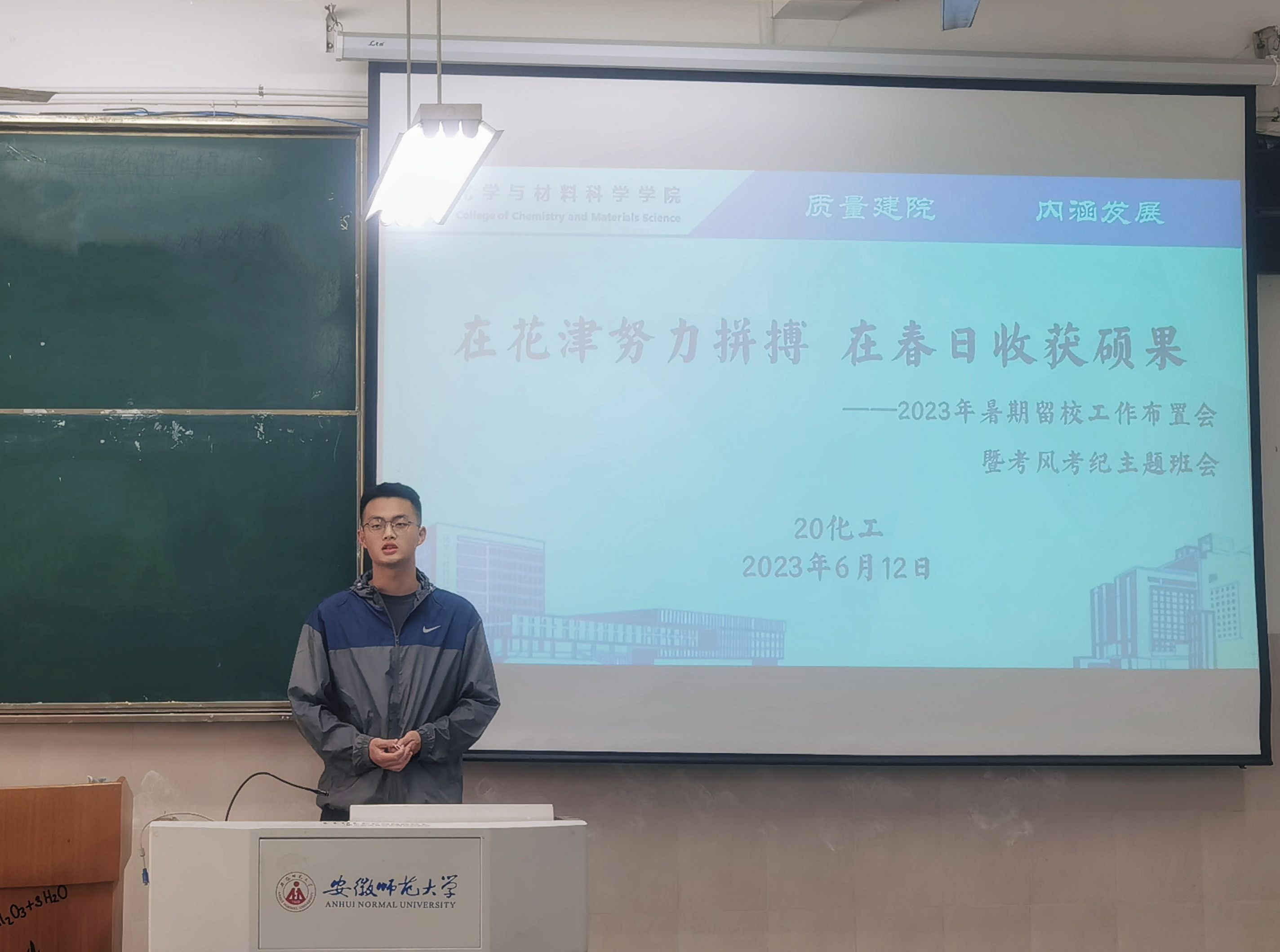 本网讯(英国正版365官方网站 汪芙琳)为强化班级学风建设、严肃考风考纪,进一步落实保障暑期留校考研员工的正常学习和生活,确保暑假期间员工的人身和财产安全,营造良好的学习与生活氛围,2023年6月12日下午在行知楼2030103教室,辅导员于洪翔为2020级化学工程与工艺专业的全体员工开展了主题为“在花津努力拼搏,在春日收获硕果”2023年暑期留校工作布置会暨考风考纪主题班会。