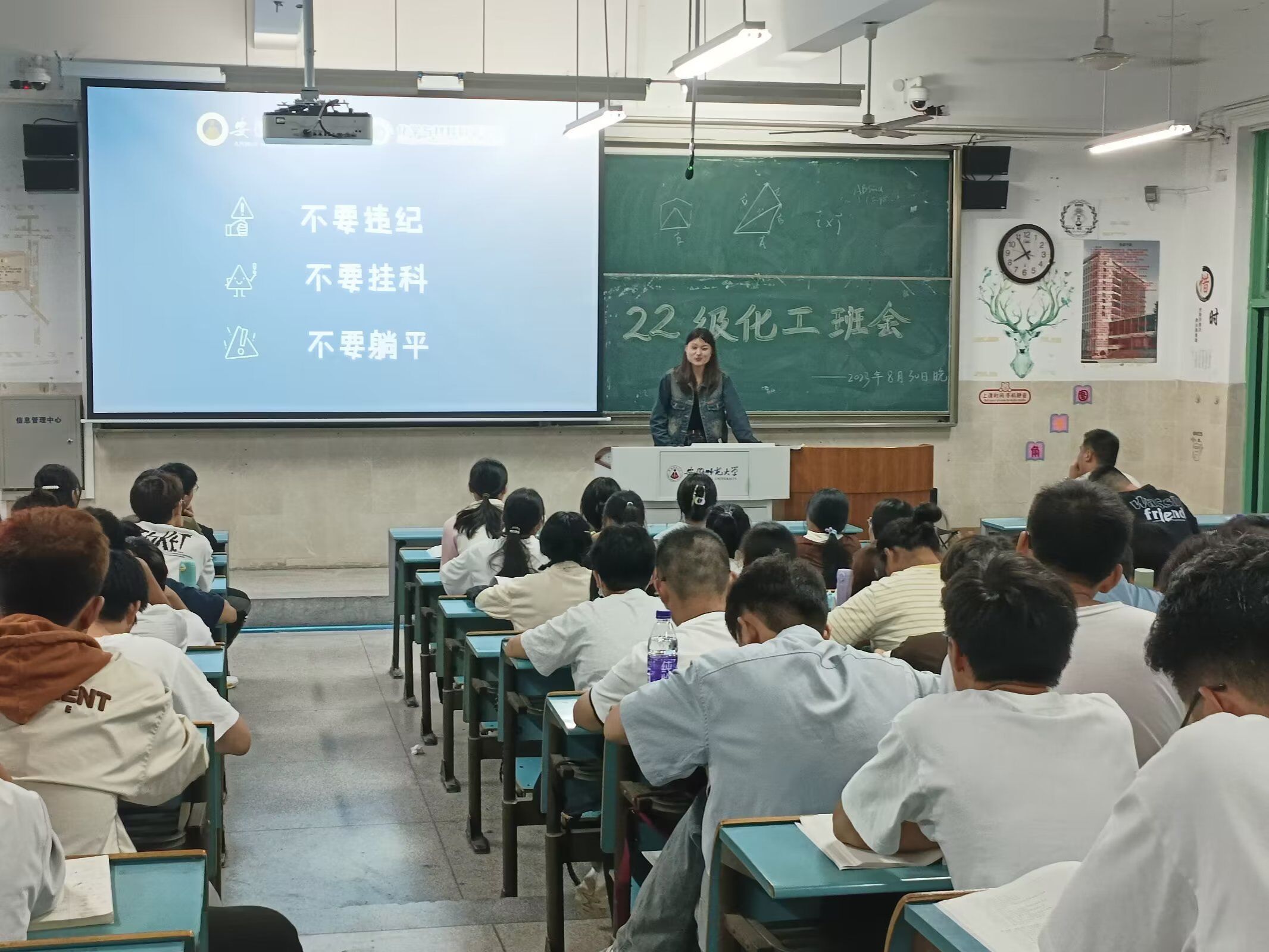 本网讯(英国正版365官方网站 朱梦茹)为帮助同学们尽快适应开学后的学习和生活,不忘入学时的初心,努力学习,以最好的状态迎接新的学年,2023年8月30日晚,2022级化学工程与工艺专业全体同学在2010308教室参加了“新学期,不忘初心”——开学第一课主题班会,会议由辅导员朱梦茹主持。