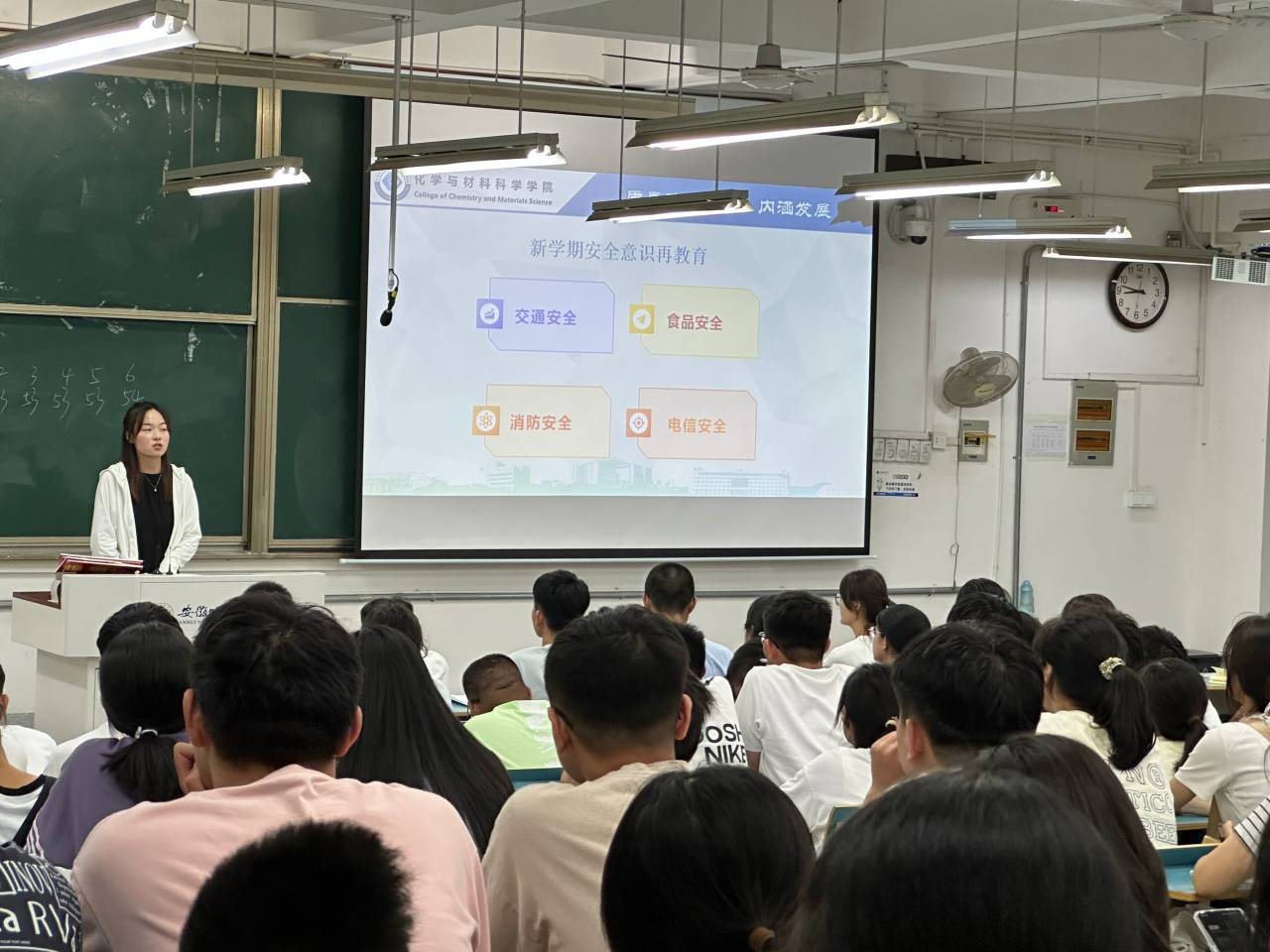为了帮助2023级化学(师范)专业新生更好地适应和规划老员工活,明确未来目标和发展方向,快速投身到军训及主题教育等各项学习任务中去,以自信昂扬的精神风貌投入到老员工活,9月2日晚,2023级化学(师范)专业全体员工在行知楼7号楼201教室参加了“Hi 新同学”——开学第一课主题班会,会议由辅导员王霞主持。