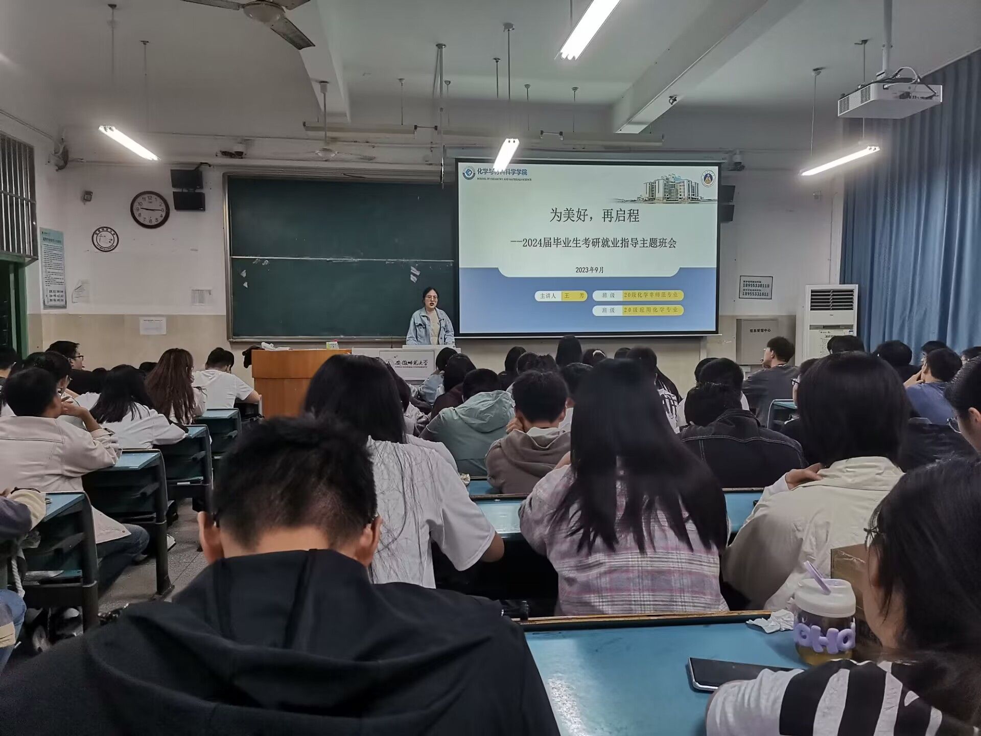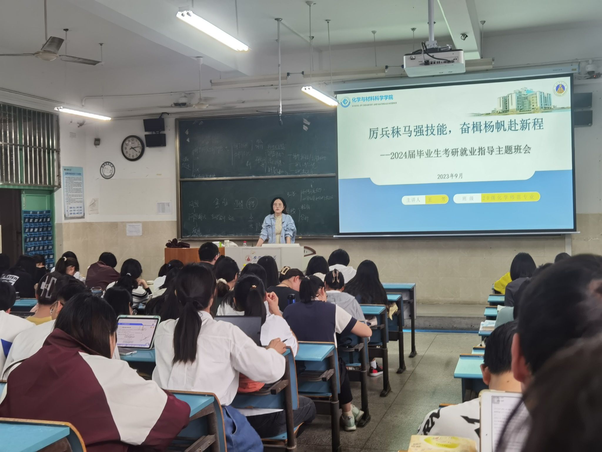本网讯(英国正版365官方网站 陶佳佳 王芳)为了详细指导员工填写完善2024届毕业生资源统计信息,确保顺利升学和就业后档案顺利转出;同时在考研的关键时刻、就业的黄金时期,督促提醒员工坚定考研、积极就业,指导员工面试技巧,帮助员工缓解考研压力,9月21日下午和晚上于行知楼2020301教室先后召开了关于2024届毕业生考研、就业指导的主题班会,会议由辅导员王芳老师主持会议,20级化学师范专业和20级化学拔尖人才班、应用化学专业全体同学参加了本次班会。