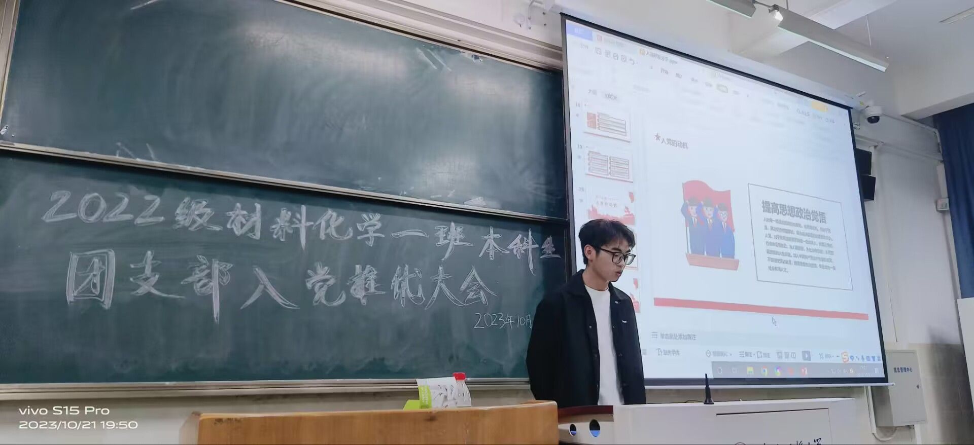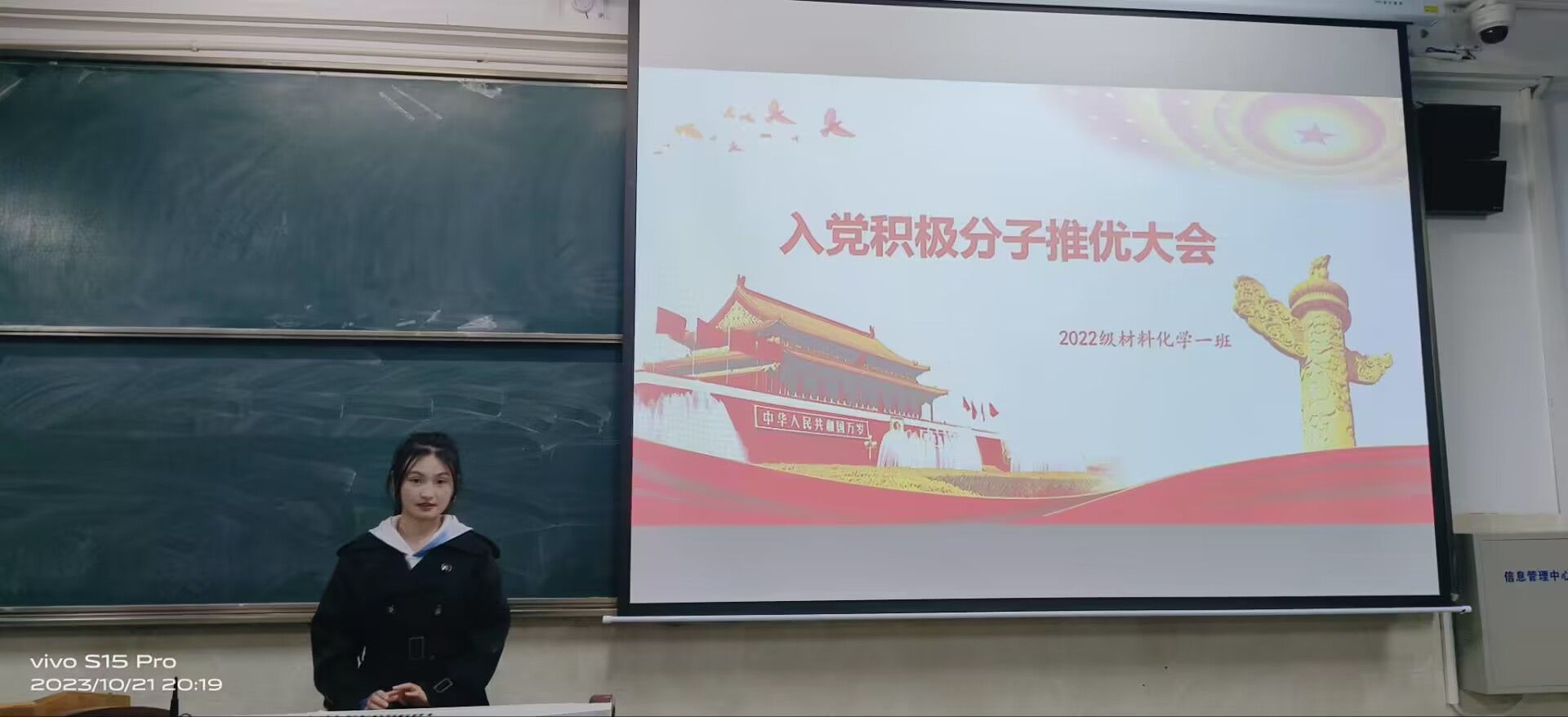 本网讯(英国正版365官方网站 李汝)推荐优秀共青团员成为入党积极分子,是党赋予共青团组织的一项光荣任务。2023年10月21日晚,2022级材料化学专业推荐优秀共青团员为入党积极分子推优大会在1号教学楼503举行,辅导员李汝主持参加会议。