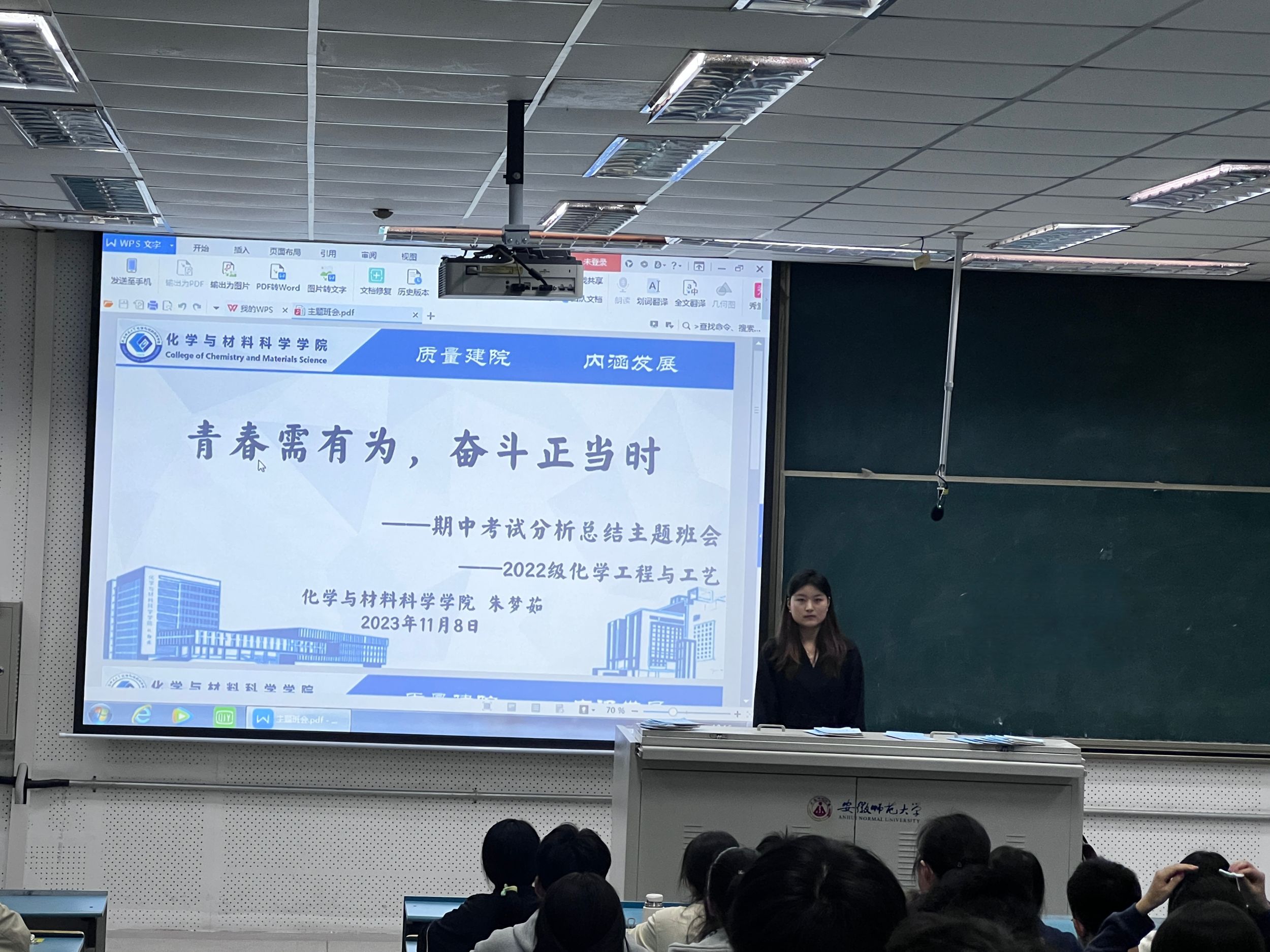 本网讯(英国正版365官方网站 朱梦茹、郁妍)2022级化工专业期中考试结束之后,2023年11月13日晚,化学工程与工艺专业在7号楼401教室召开了期中考试总结班会,会议的主题为“青春需有为,奋斗正当时”。本次班会由辅导员朱梦茹老师主持,主要面对化工两个班级的同学,针对本班成绩及学习状态等进行分析。