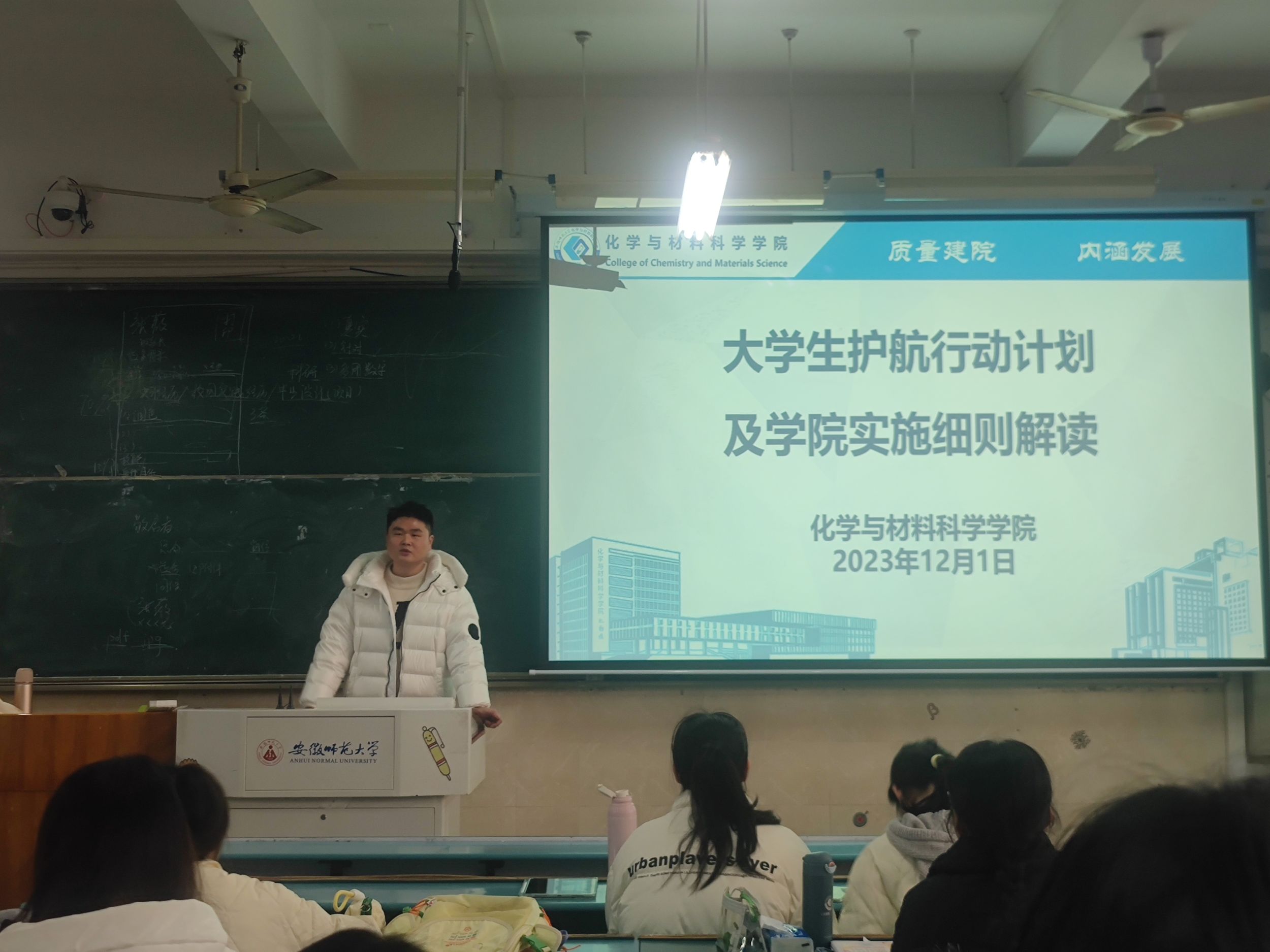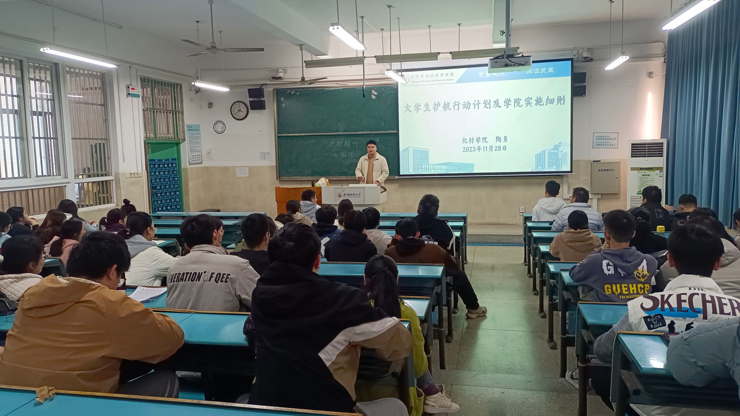 本网讯(英国正版365官方网站 杨妍、陶勇)为深入了解员工思想学习生活等方面存在的问题,并为员工的全面发展提供良好保障,辅导员陶勇老师分别于2023年月28日、12月1日下午在行知楼2010302、303教室为2021级化学师范、化学非师范专业全体同学召开老员工护航行动计划及公司实施细则解读主题班会。