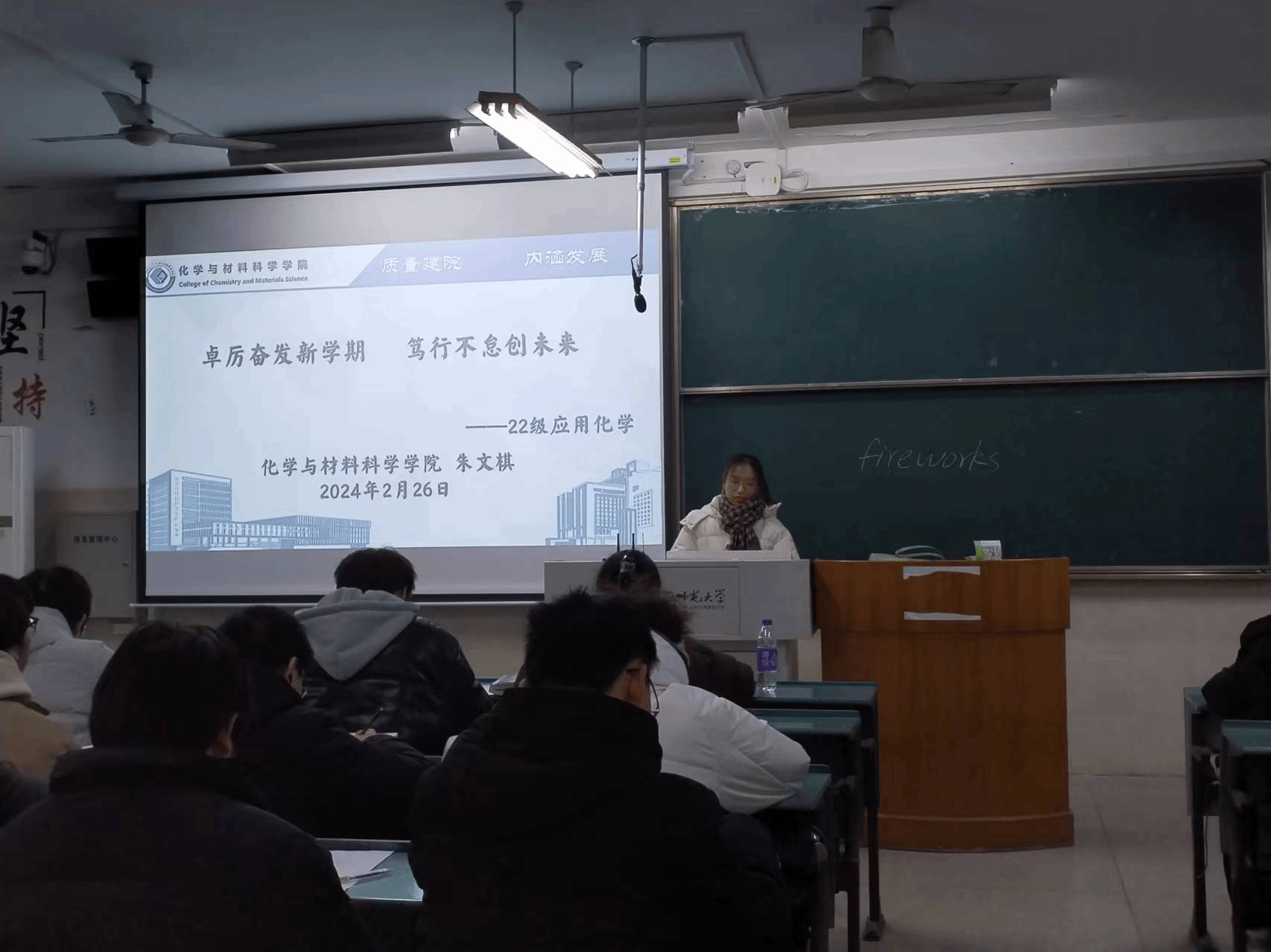本网讯(英国正版365官方网站朱文棋 许静媛)卓力奋发新学期,笃行不怠创未来。为落实新学期员工护航重点任务,2024年2月26日晚,在2010602教室朱文棋老师为应用化学专业的同学开了一次“开学第一课”主题班会,着重引导同学们加强对个人思想政治素质和规矩意识的培养,不断增强自我教育、自我管理和自我服务的能力,同时就新学期的班级管理工作进一步明确了制度和标准。