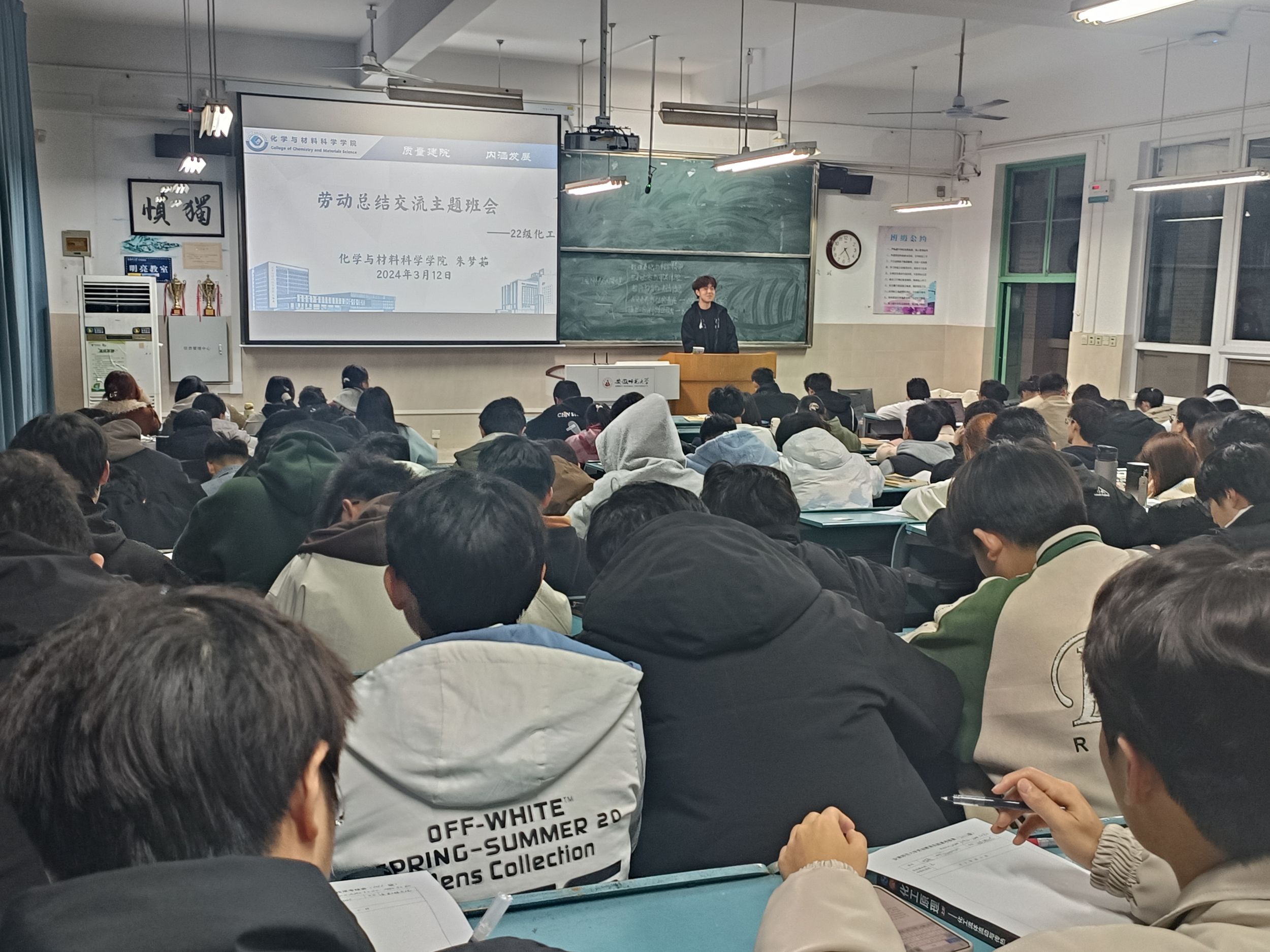 本网讯 (英国正版365官方网站 郁妍)劳动为犁,深耕梦想。2024年3月12日晚上七点,2020级化学工程与工艺专业在2号楼302教室召开了劳动总结交流主题班会,班会对为期一周的劳动时光做了详细的记录和回顾,本次会议由辅导员朱梦茹老师主持。