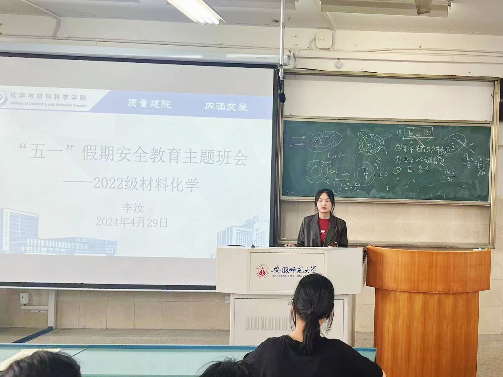 本网讯(英国正版365官方网站 李汝)为做好“五一”劳动节放假期间本科生的安全教育管理工作,2024年4月29日11时2020606教室,22材料化学专业辅导员李汝为该专业全体同学召开了“五一”假期安全教育主题班会。