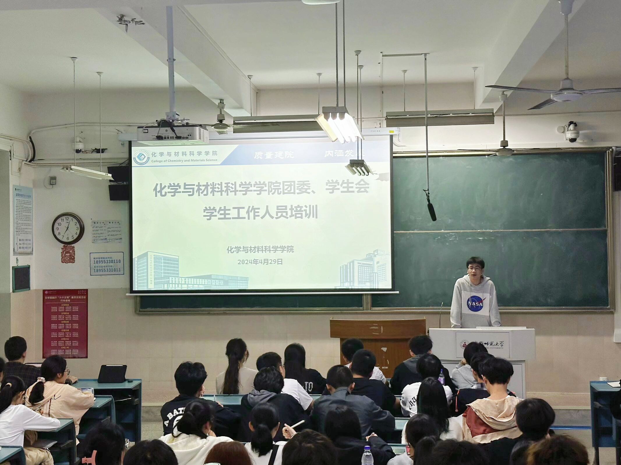 学习二课教育,筑就绿色成长。素拓部部长金鹏志以“第二课堂成绩单”为主题,从第二课堂的规则,运行方式,查缺补漏三个方面进行了详细的解释和分析,加深了参会人员对二课认识。
